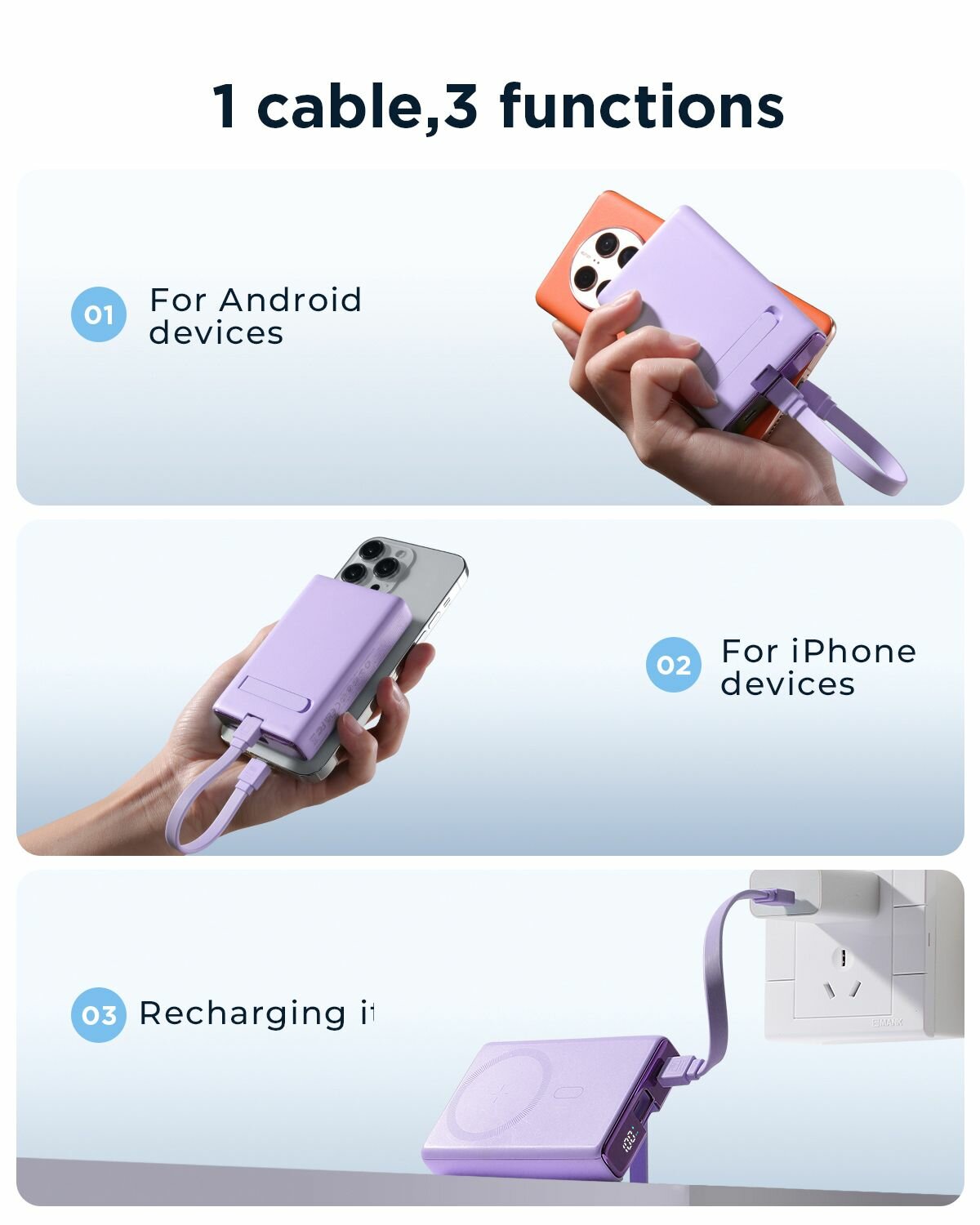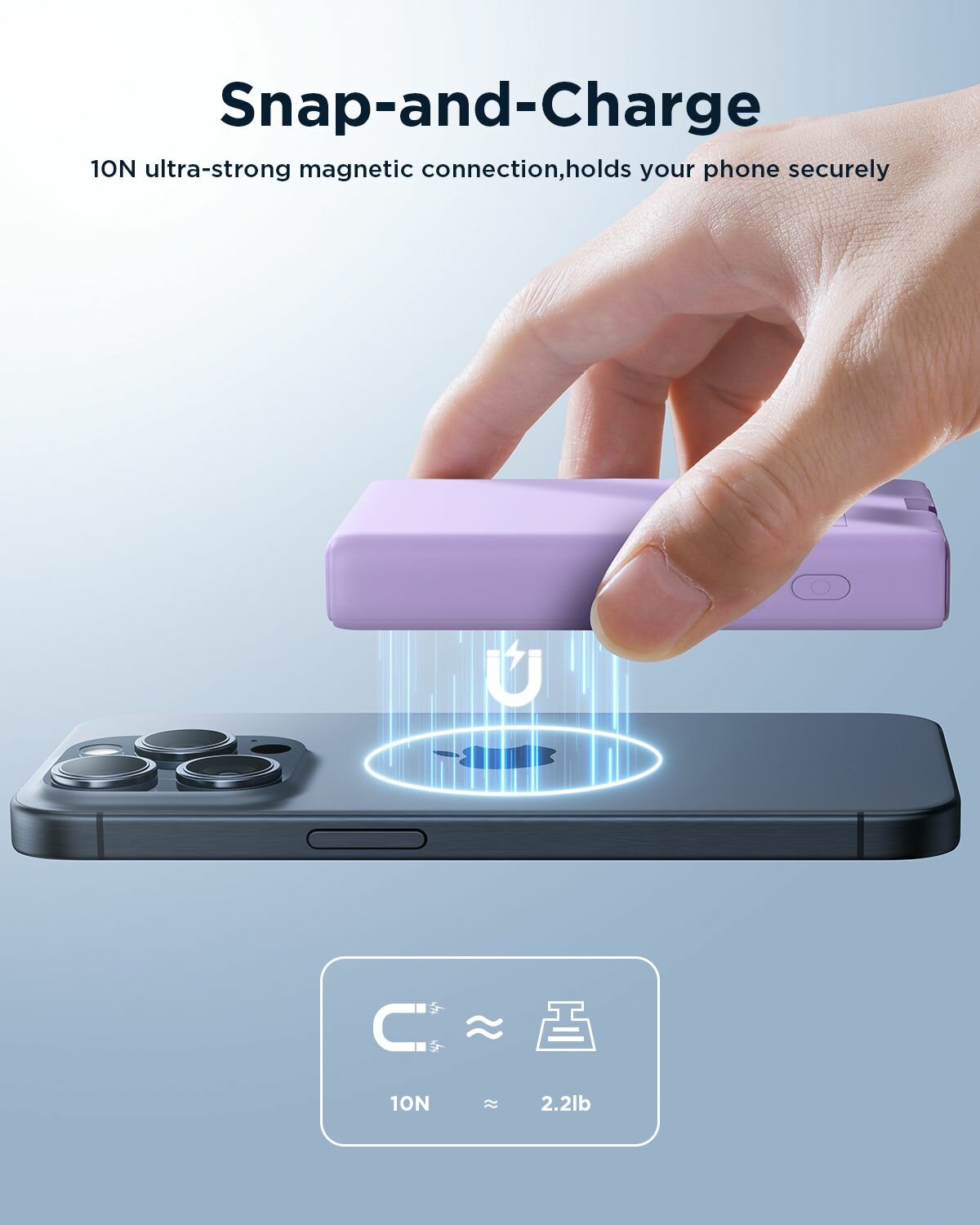 Купить Внешний аккумулятор Joyroom 10000 mAh MagSafe / JR-PBM01 20W с кабелем / фиолетовый с доставкой по всей России.
