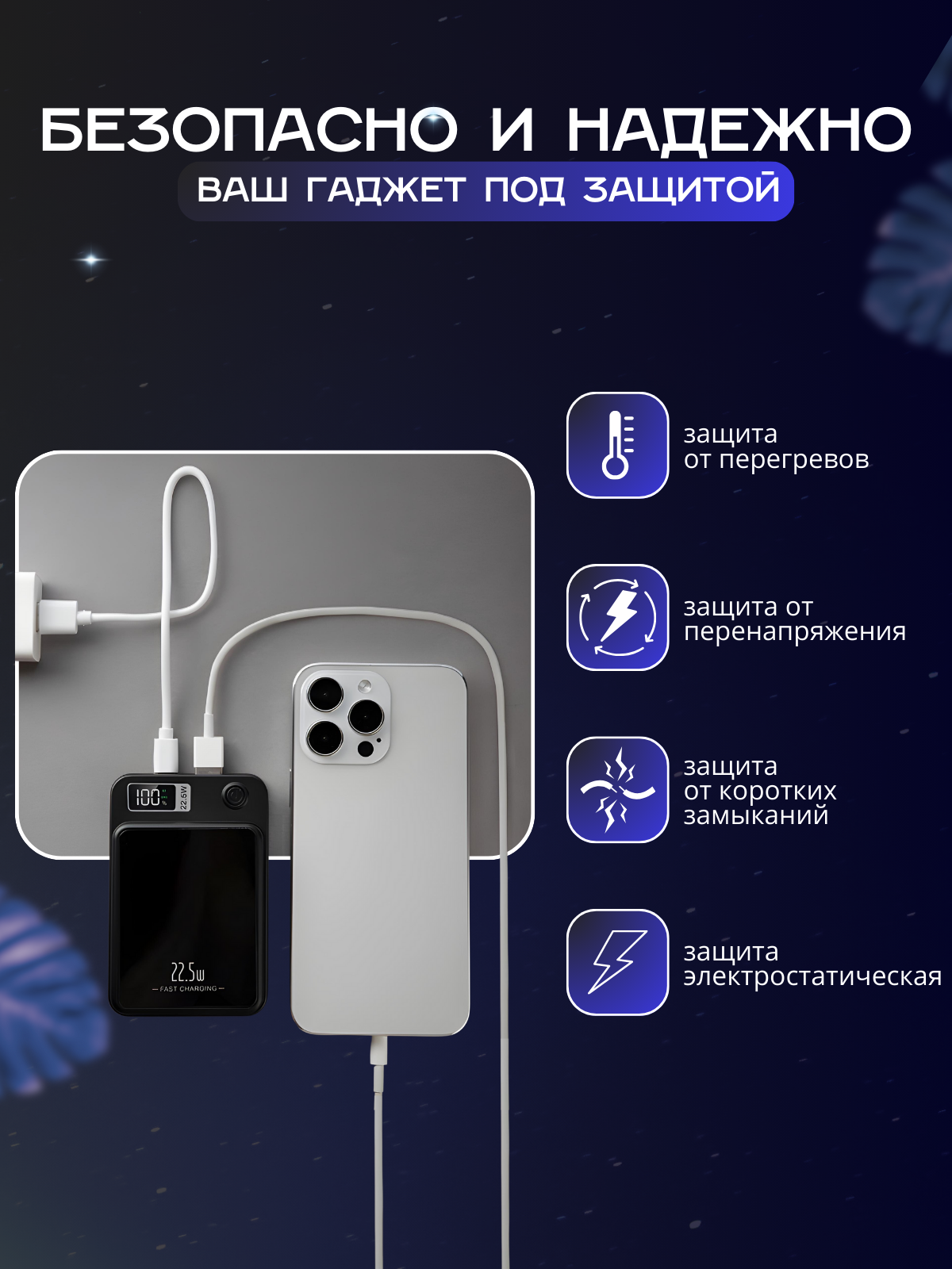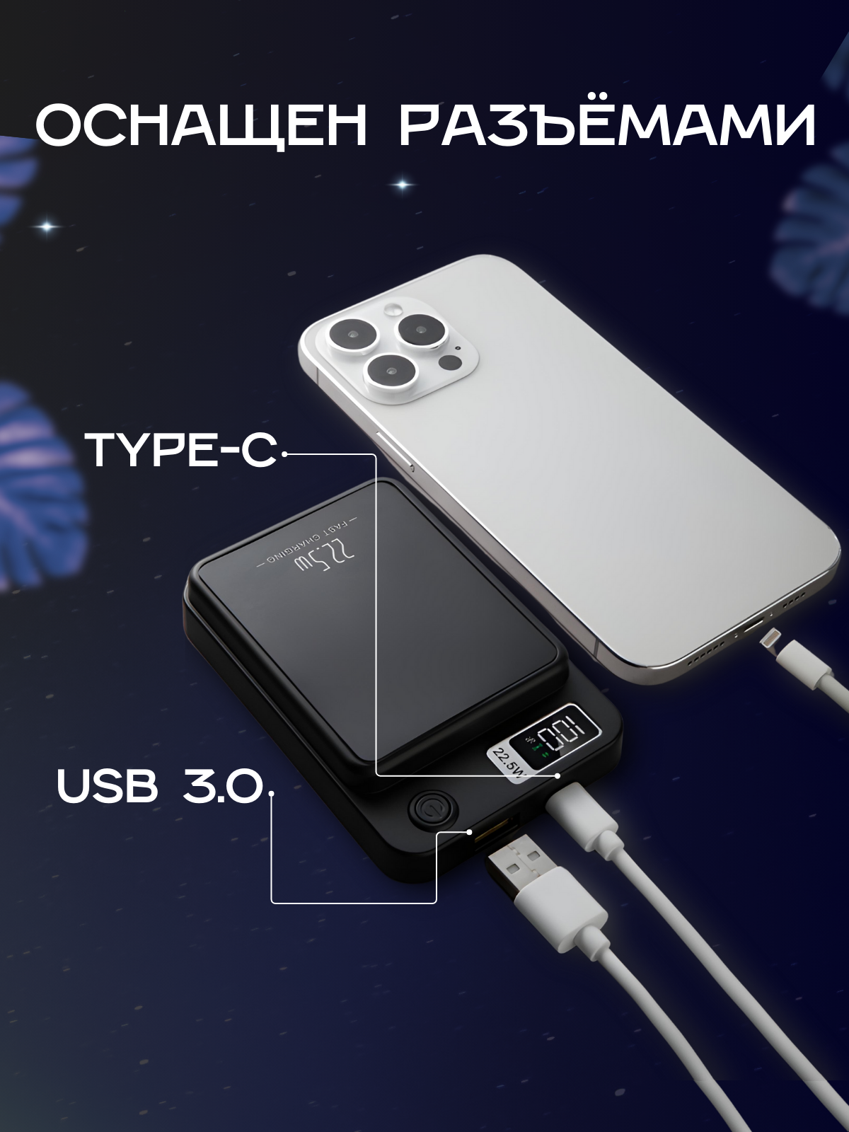 Внешний аккумулятор Kingxbar Power bank, 10000 мАч, 2 USB, MagSafe, с индикатором, цвет черный: сравнение цен, характеристики, фото, актуальное наличие и цены.