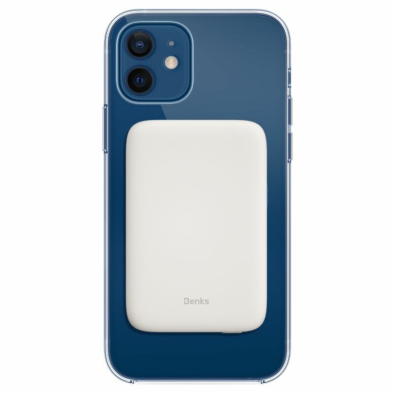 Benks On-Go – это магнитное портативное зарядное устройство, которое сочетает в себе беспроводную и проводную зарядки, и оснащено встроенной батареей на 5000 мАч. Оно идеально сочетается с дизайном камеры нового смартфона, не заслоняя ее (даже в мини-версии). Благодаря легкому и компактному дизайну, мощному магнитному соединению и высокому уровню безопасности, это зарядное устройство станет незаменимым помощником в дороге. Оно поддерживает беспроводную зарядку 7,5 Вт и проводную 12 Вт, имеет закругленные края для удобства использования и совместимо с MagSafe. Мощные магниты гарантируют идеальную зарядку каждый раз, а стильный силиконовый чехол делает устройство тонким и легким. Индикатор заряда батареи поможет контролировать уровень заряда, а поддержка PD обеспечит быструю и эффективную зарядку.