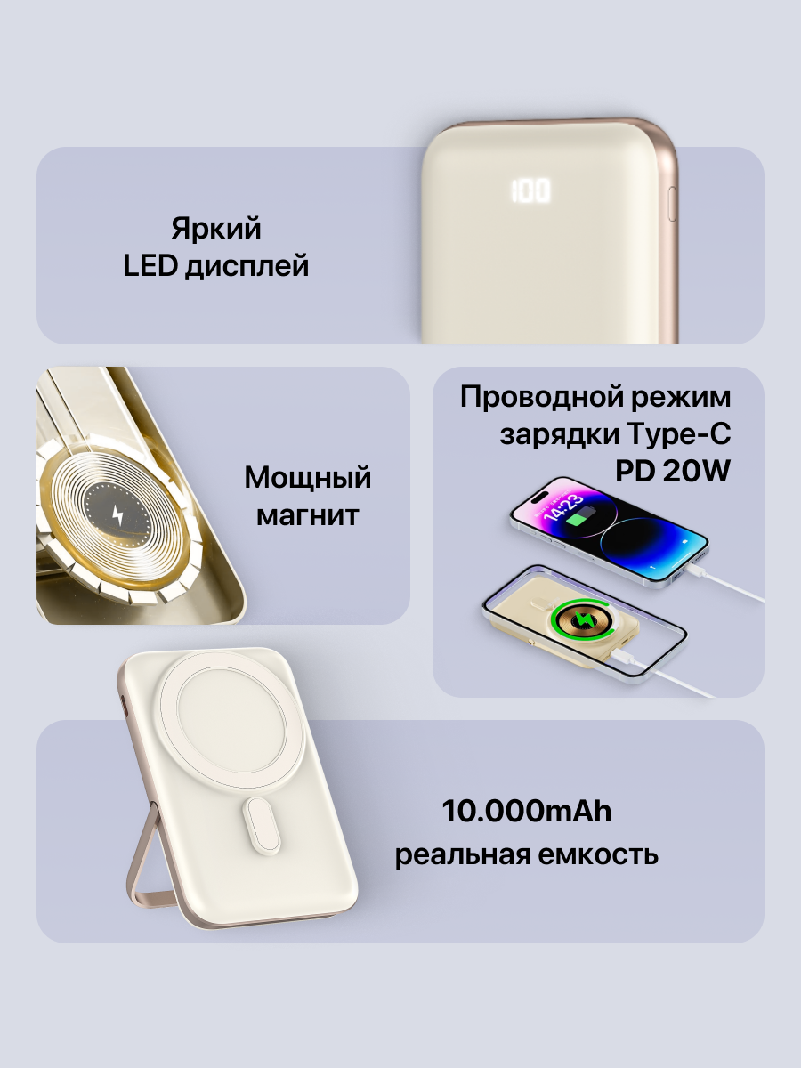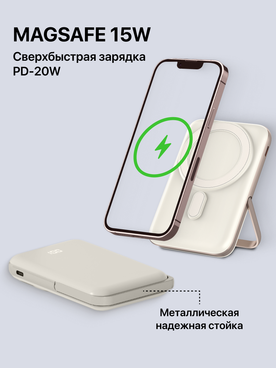 Внешний аккумулятор MagSafe Power Bank 10000 mAh для iPhone, бежевый: сравнение цен, характеристики, фото, актуальное наличие и цены.