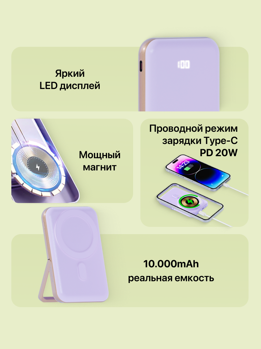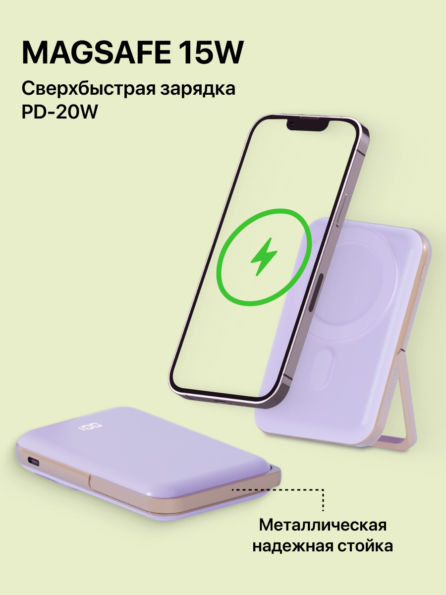 Внешний аккумулятор MagSafe Power Bank 10000 mAh для iPhone, лиловый: сравнение цен, характеристики, фото, актуальное наличие и цены.