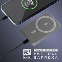 Olmio MagSafe QM-06 - это ультратонкий внешний аккумулятор с емкостью 5000 мАч. Он оснащен встроенным магнитом, который позволяет легко прикрепить его к вашему iPhone 12 или iPhone 13, обеспечивая удобную и надежную беспроводную зарядку. Благодаря компактному и стильному дизайну аккумулятор идеально вписывается в повседневную жизнь и станет отличным дополнением к вашему смартфону. Кроме того, Olmio MagSafe QM-06 поддерживает технологию быстрой зарядки Power Delivery, что позволяет зарядить ваше устройство до 50% всего за 30 минут. Аккумулятор также оснащен всеми необходимыми защитами для безопасной и надежной зарядки вашего устройства.