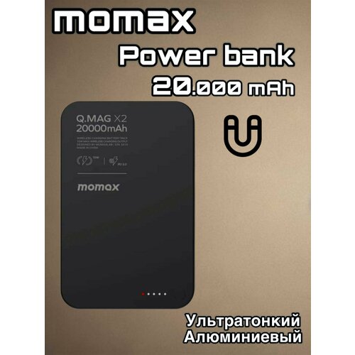 MO MA X Беспроводной дополнительный аккумулятор (MagSafe) Momax Q.Mag 20.000 mAh Размер - 109.5 x 68.5 x 23.5 mm