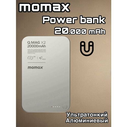 MO MA X Беспроводной дополнительный аккумулятор (MagSafe) Momax Q.Mag 20.000 mAh Размер - 109.5 x 68.5 x 23.5 mm