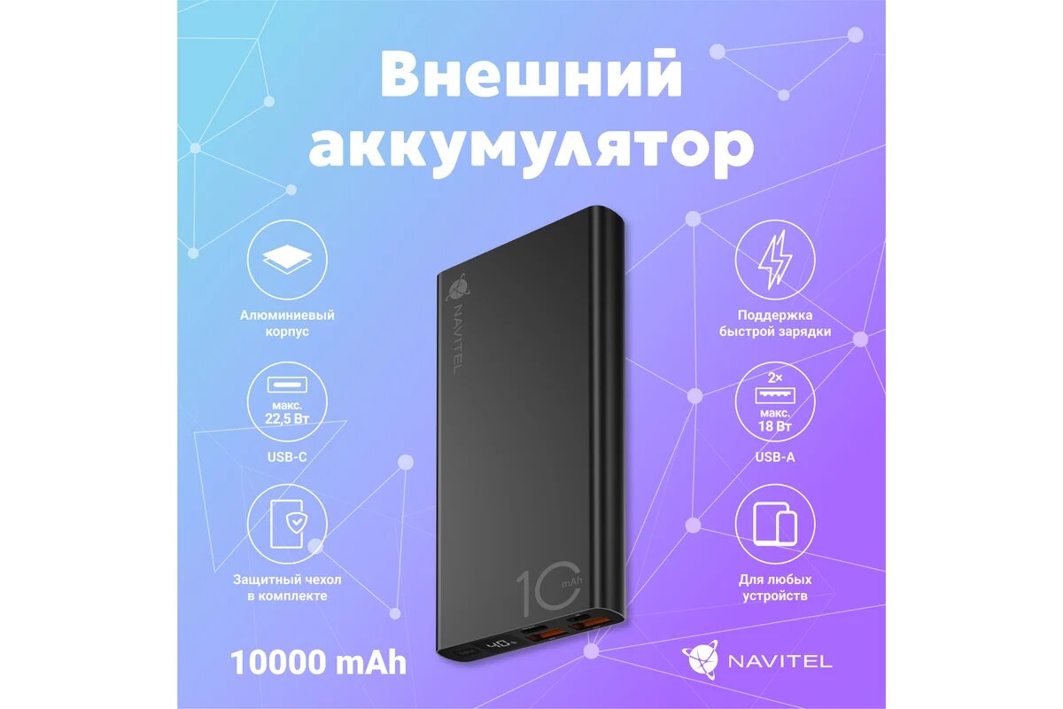 Внешний аккумулятор NAVITEL 10000А алюминий черный PowerBank PWR10 AL BLACK: сравнение цен, характеристики, фото, актуальное наличие и цены.