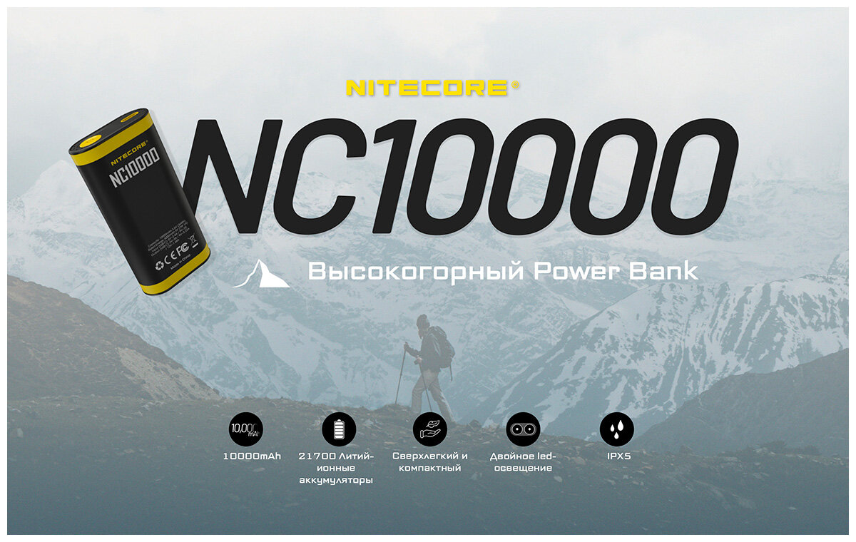 NC10000 считается высокогорным Power Bank, который доступен для использования даже в самых суровых условиях, при этом в нём используются литий-ионные аккумуляторы типа 21700 с помощью которых эта модель выдерживает высокогорье и другие высоты. Имеет достаточно компактные габариты и маленький вес, легко помещается даже в кармане Ваших курток или штанов.