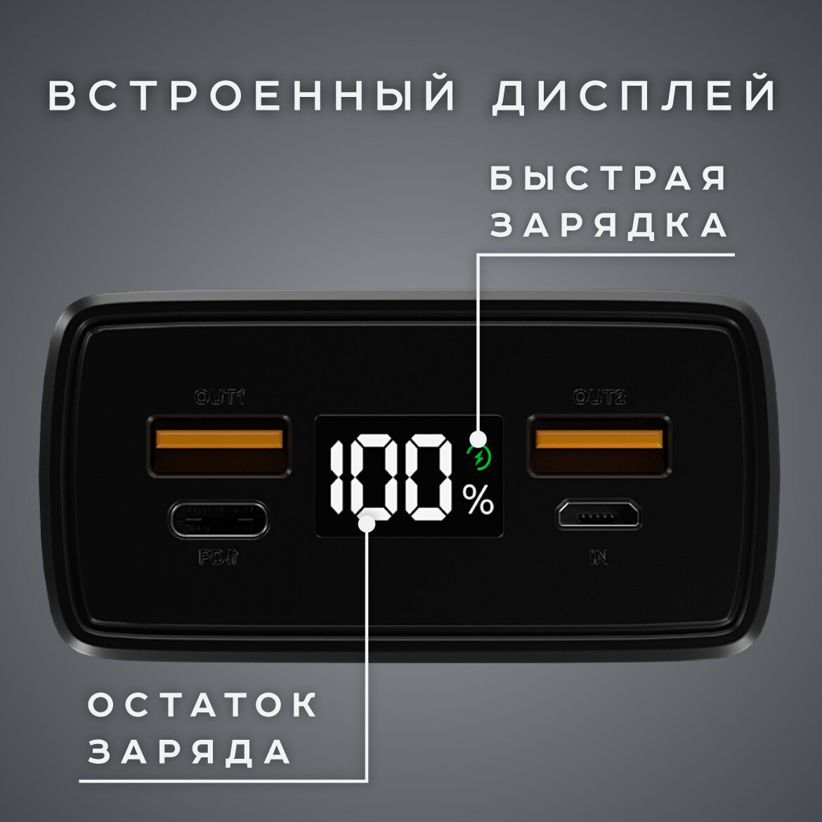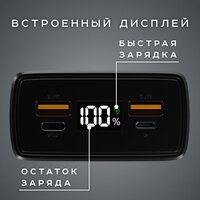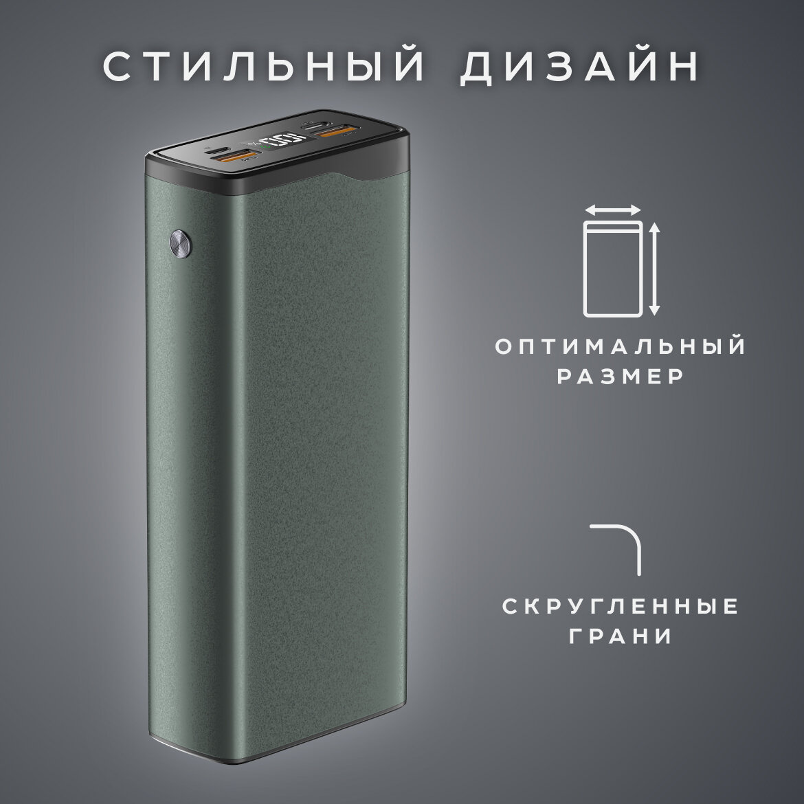 Портативный аккумулятор Olmio QL-30 позволяет одновременно подзаряжать три устройства, так как оснащен двумя USB-разъемами Type-A и одним разъемом стандарта Type-C. Данная модель обладает емкостью 30000 мА*ч, выходной мощностью в пределах показателя 22.5 Вт и поддержкой востребованных стандартов ускоренной подзарядки. Olmio QL-30 изготовлен в прочном алюминиевом корпусе и обладает компактными размерами. Панель с дисплеем отображает количество оставшегося заряда в процентах и помогает контролировать его.