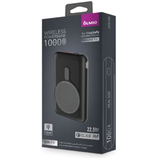 Внешний аккумулятор Olmio QM-11, 10000mAh, 15W, MagSafe, серый: сравнение цен, характеристики, фото, актуальное наличие и цены.