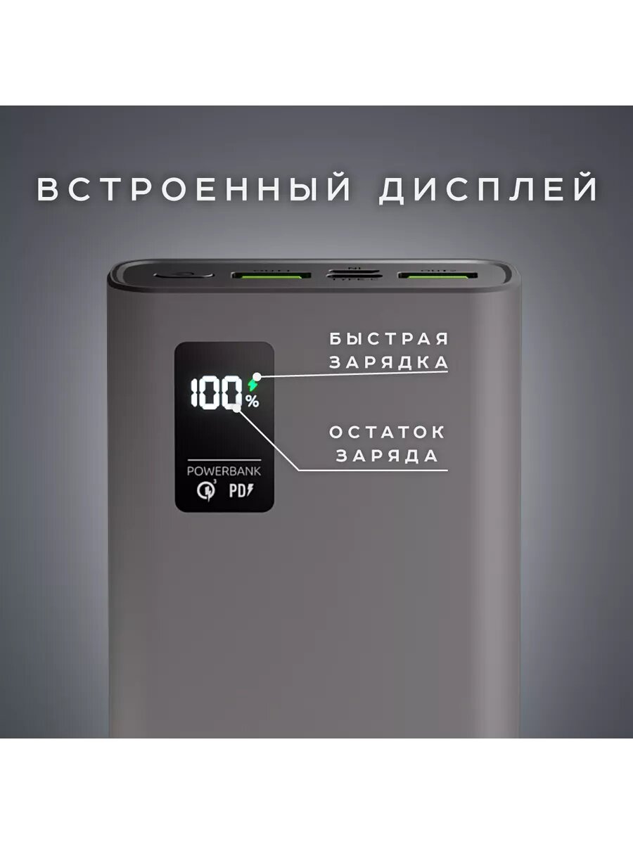 Портативный аккумулятор Olmio QR-20 с увеличенной емкостью 20000 мАч обеспечивает высокую эффективность подзарядки смартфона, планшета и других портативных устройств. Благодаря поддержке стандартов Quick Charge 3.0 и Power Delivery достигается ускоренный процесс восстановления энергоресурса подключенного устройства. В оснащение данного аккумулятора входят 2 выходных разъема USB Type-A, а также входные разъемы micro USB и USB Type-C. Olmio QR-20 выполнен в прочном и компактном корпусе, поэтому не займет много места в сумке. Цифровой дисплей помогает отслеживать уровень оставшегося заряда.
