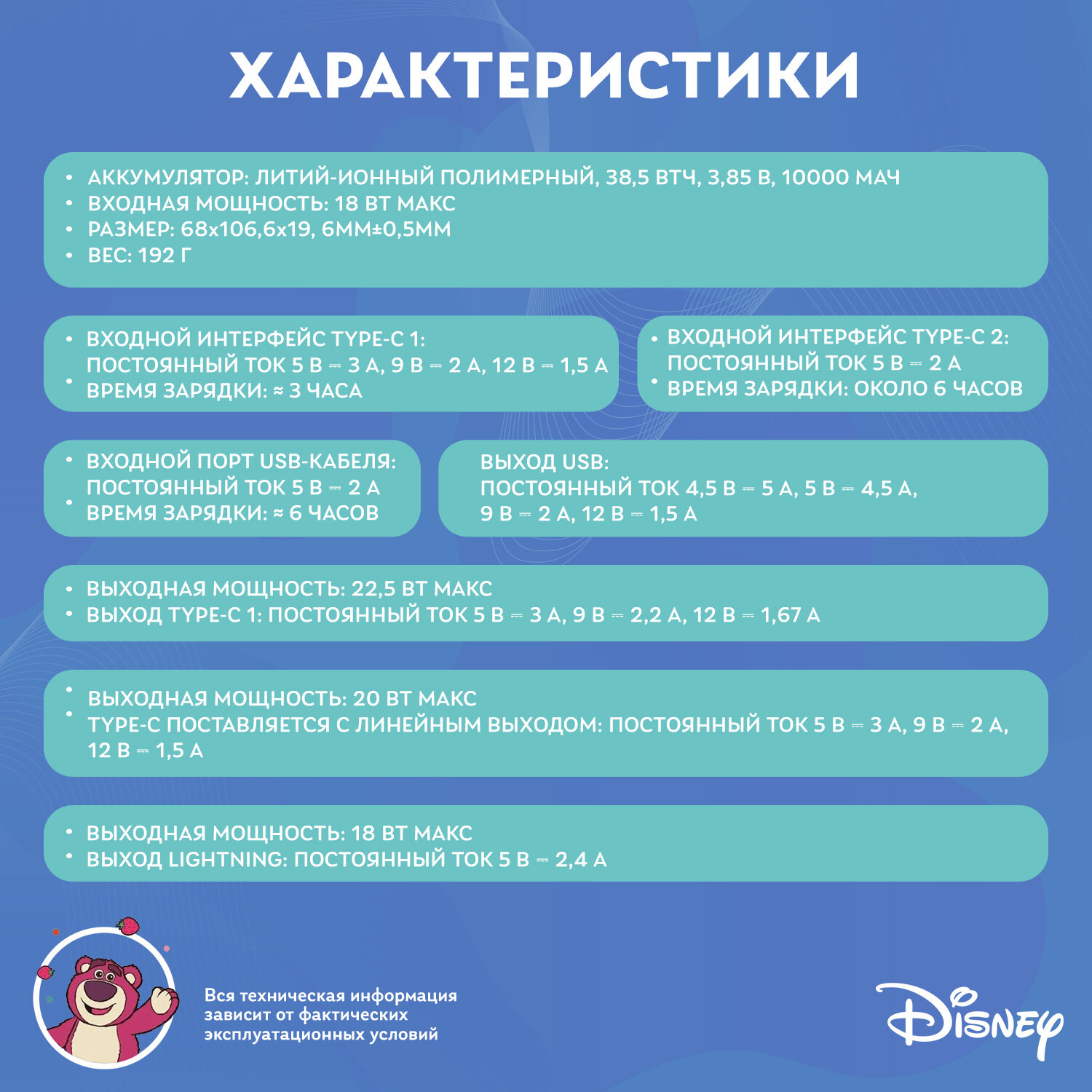 Внешний аккумулятор Дисней История игрушек: Медведь Лотсо, 10000 мАч, быстрая зарядка, индикатор уровня заряда: сравнение цен, характеристики, фото, актуальное наличие и цены.