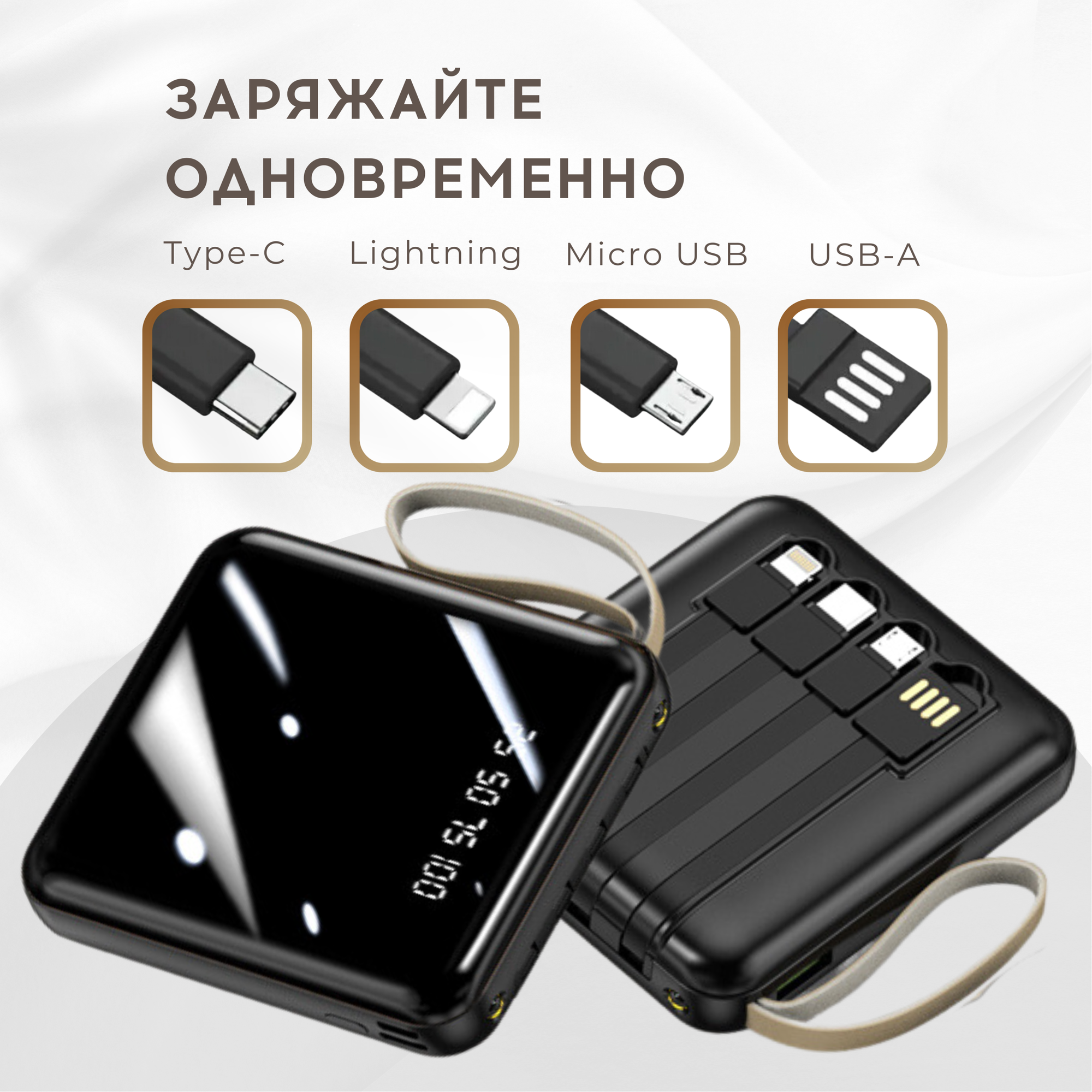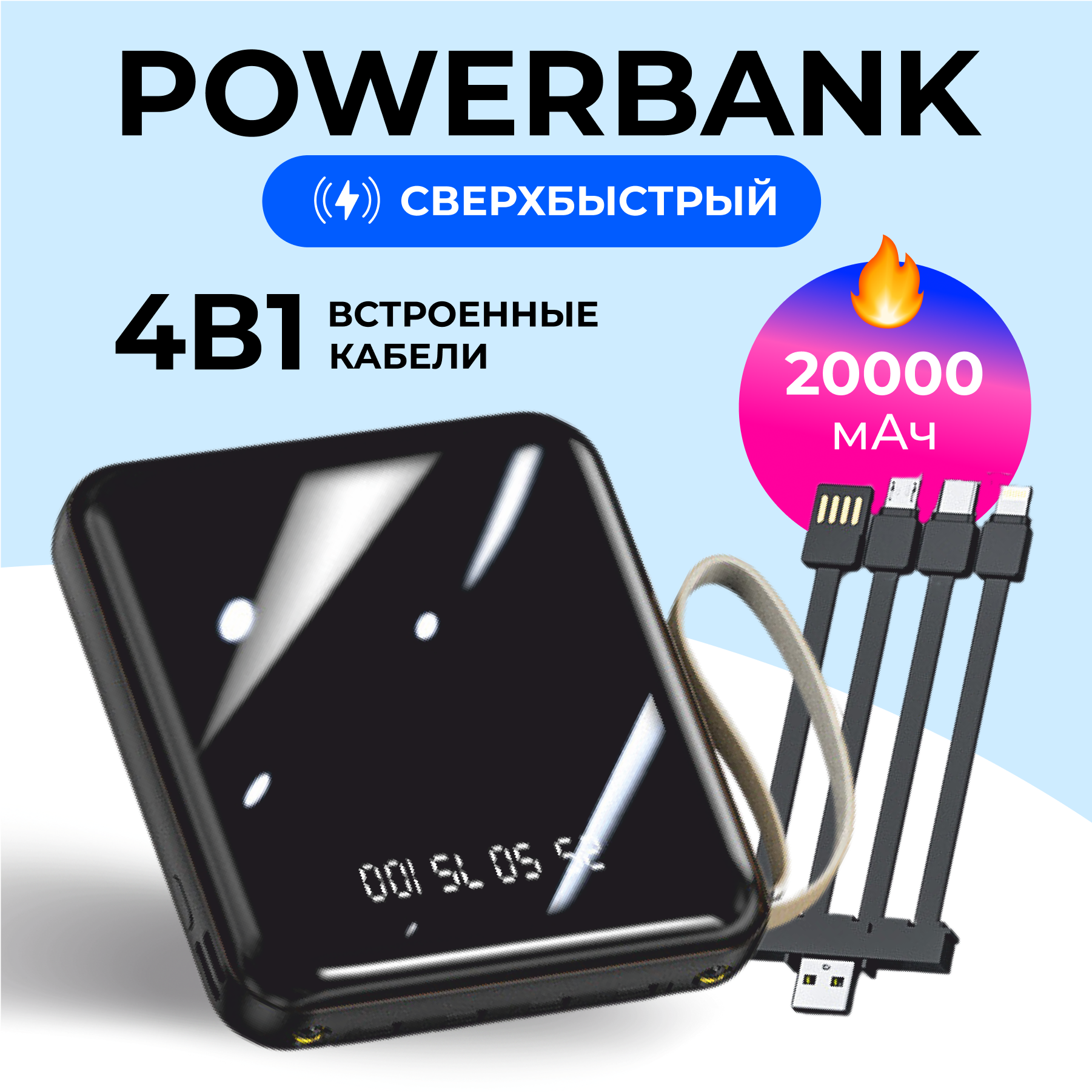 Внешний аккумулятор портативный повербанк 20000 мАч, 4 провода, кожанный ремешок, quick charge: сравнение цен, характеристики, фото, актуальное наличие и цены.
