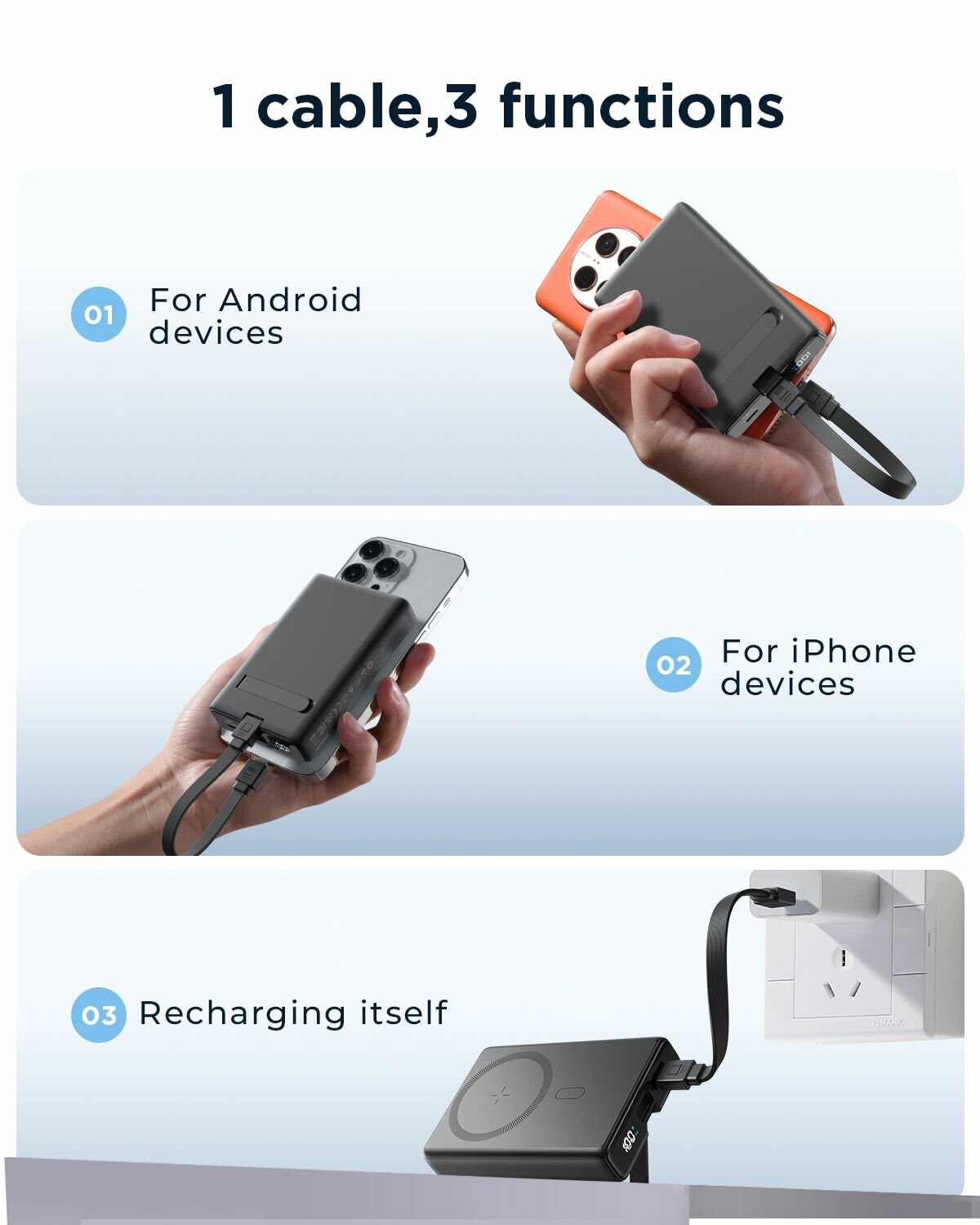 Внешний аккумулятор повербанк магнитный Joyroom 10000 mAh MagSafe / JR-PBM01 20W с кабелем / Черный: сравнение цен, характеристики, фото, актуальное наличие и цены.