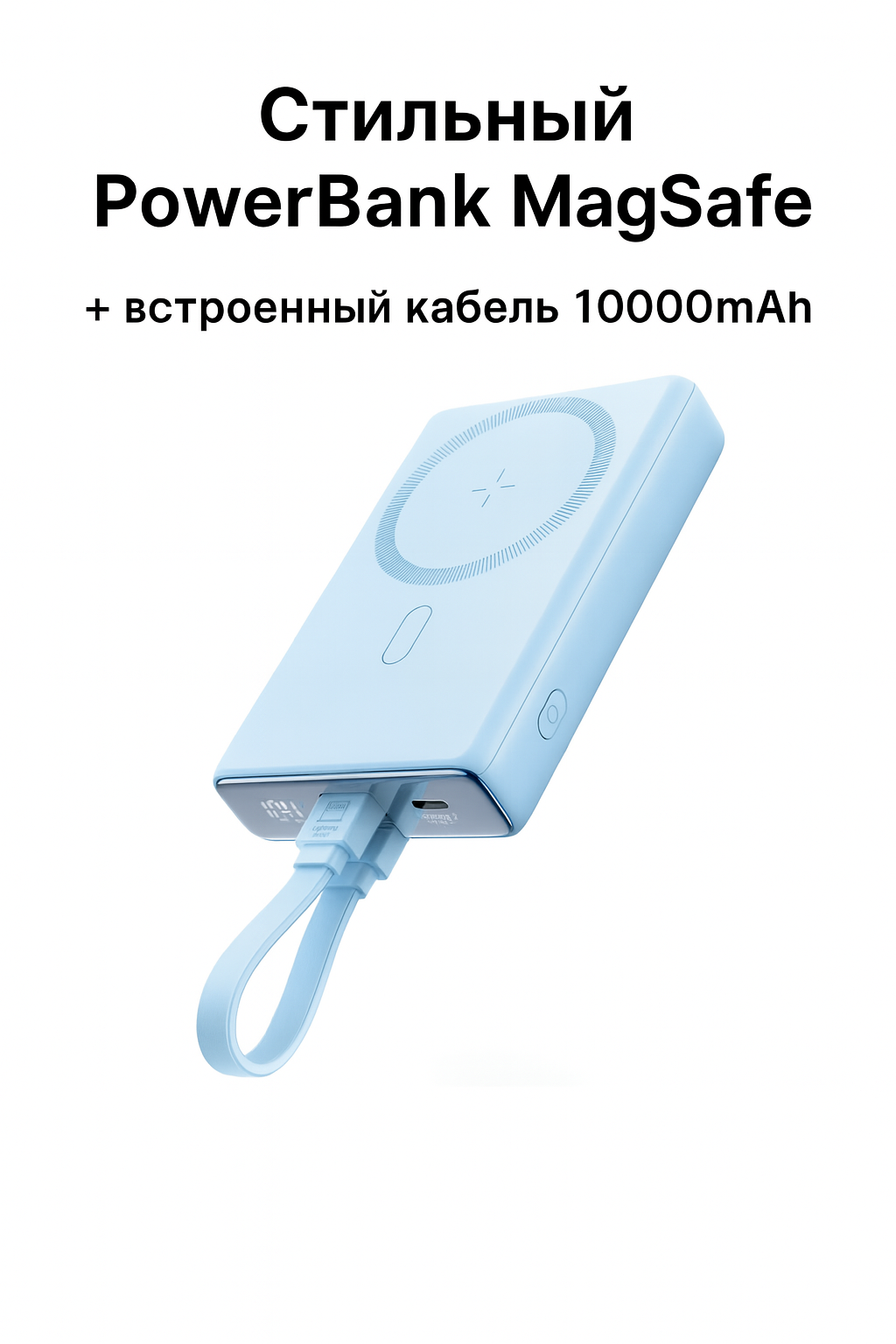 Внешний аккумулятор повербанк магнитный Joyroom 10000 mAh MagSafe / JR-PBM01 20W с кабелем / голубой: сравнение цен, характеристики, фото, актуальное наличие и цены.