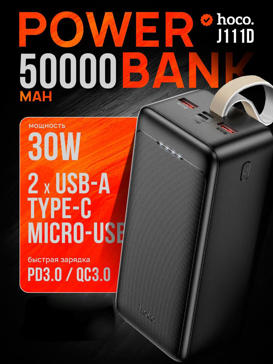 Купить Внешний аккумулятор повербанк Power bank J111D 50000mAh PD 30W+ QC3.0 22.5W черный с доставкой по всей России.