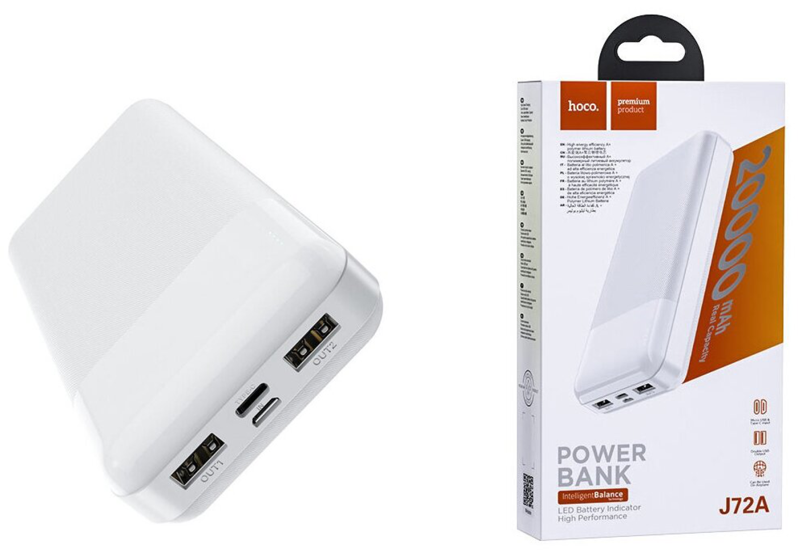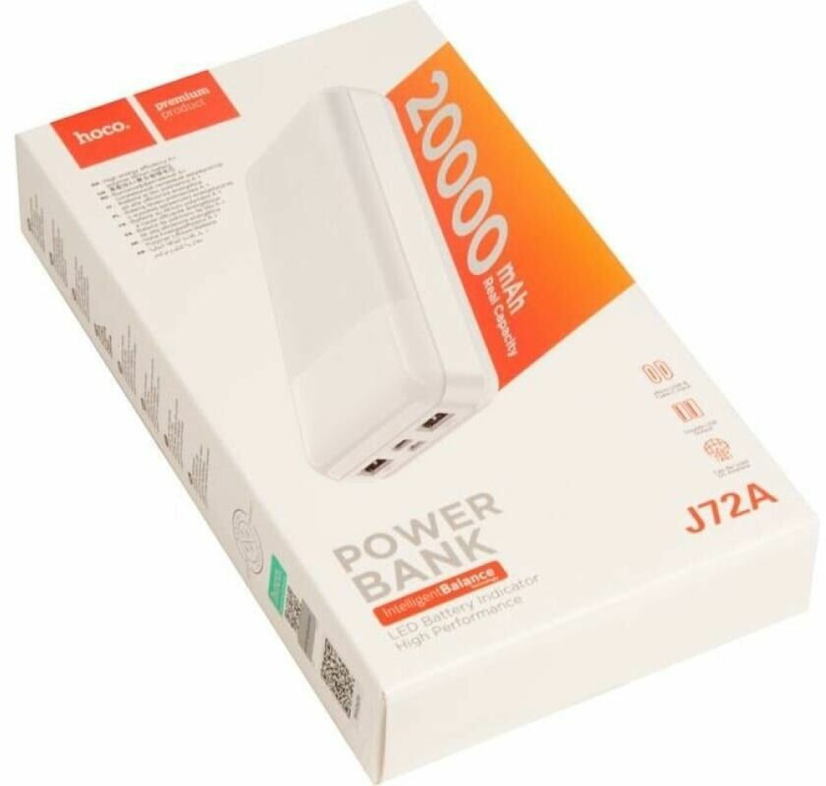 Универсальный Доп. Аккумулятор 20000mAh, J72A, HOCO, 2 USB (5V/2.0A), белый: сравнение цен, характеристики, фото, актуальное наличие и цены.
