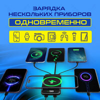 Полезный новогодний подарок под ёлку - повербанк на 30 000 мАч , добавит удобства и радости в жизнь! Внешний аккумулятор с емкостью 30 000 мАч и беспроводной зарядкой - это идеальное решение для тех, кто нуждается в надежной зарядке своих устройств в дороге или на работе. Внешний аккумулятор для зарядки power bank с беспроводной зарядкой имеет 2 порта USB и 4 провода зарядки Type-C, Lightning, Micro USB, USB-A. Этот уникальный гаджет позволяет заряжать несколько устройств одновременно! Высокая емкость 30000 мач. Беспроводное зарядное устройство для телефона рассчитано для быстрой зарядки iPhone, Samsung, Xiaomi Redmi. любого смартфона, планшета, фотоаппарата, ноутбука, наушников и тд. Портативное зарядное устройство обладает дисплеем, где можно контролировать уровень заряда. Повербанк удобно брать с собой, будет полезен в дороге, на отдыхе, в отпуске. Перед использованием обязательно зарядить до максимума. При получении новый павербанк может показывать меньше емкость от заявленной, она восстановится до заводских значений через 3-5 зарядок. Зарядка через боковое гнездо micro USB блоком питания 5V-2A. Блок питания в комплекте не идёт.