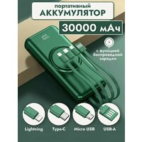 Купить Внешний аккумулятор Power Bank 30000mAh с беспроводной зарядкой и встроенными кабелями с доставкой по всей России.