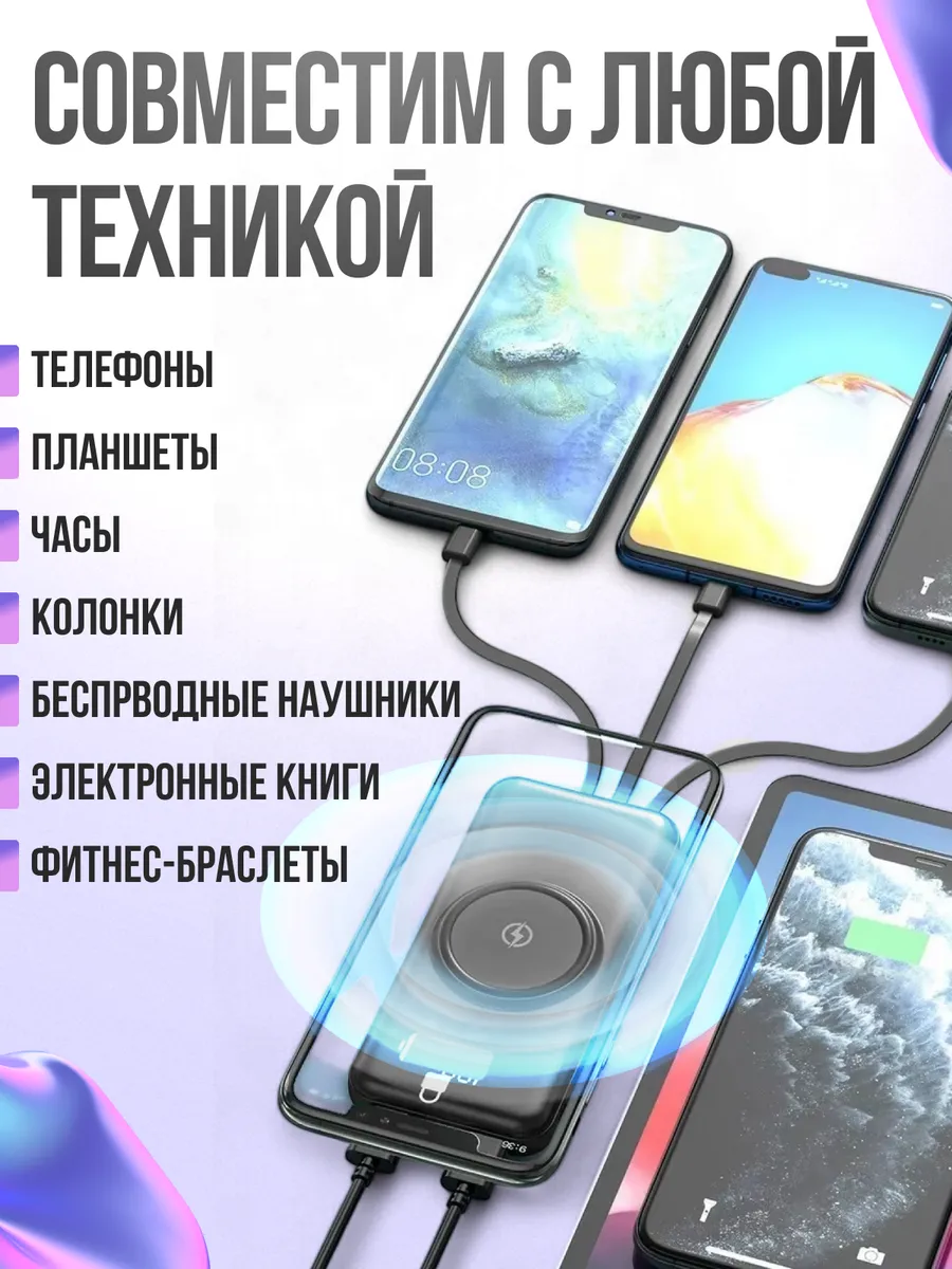Внешний аккумулятор Power Bank 30000mAh с беспроводной зарядкой и встроенными кабелями: сравнение цен, характеристики, фото, актуальное наличие и цены.