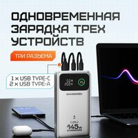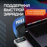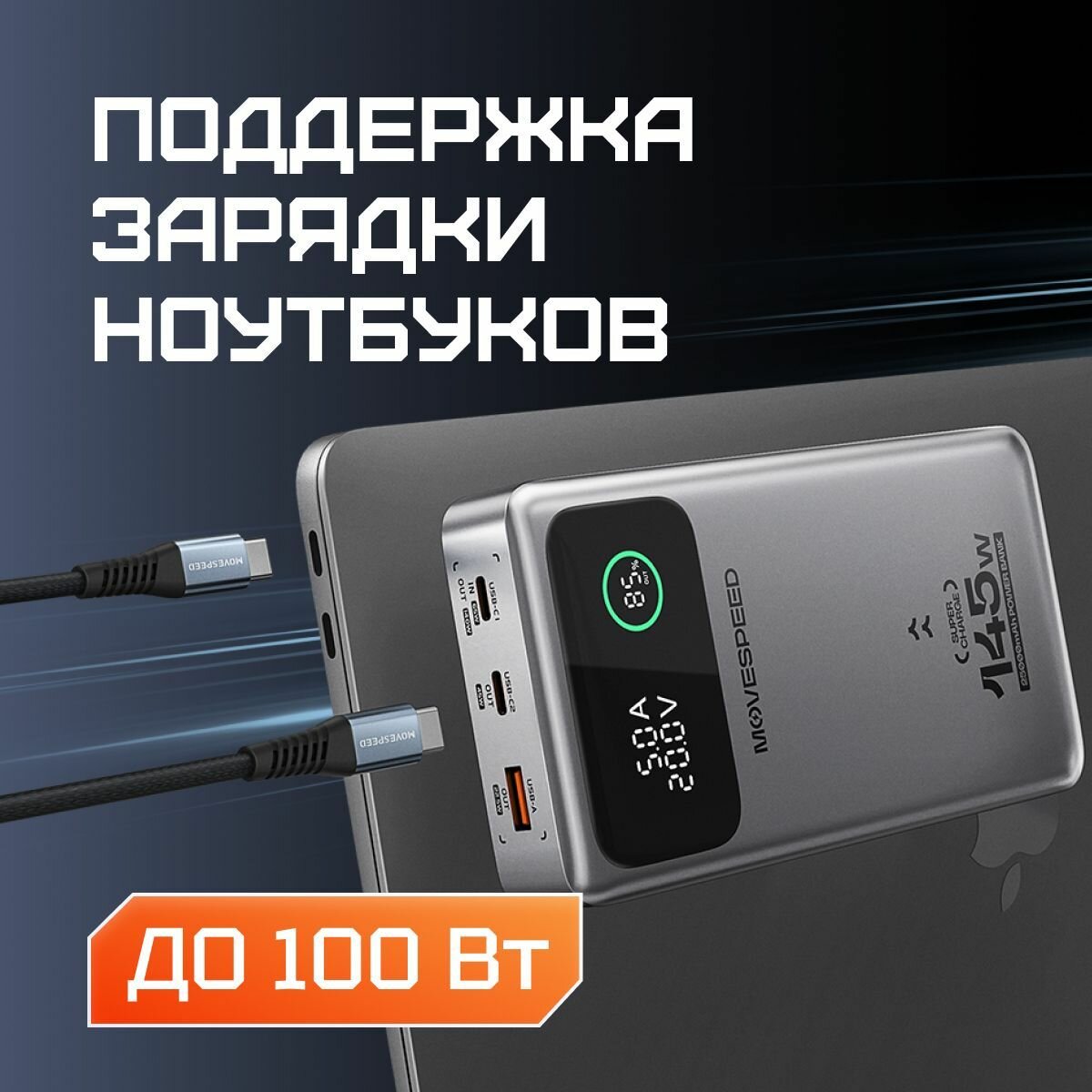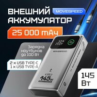 Компания Movespeed является высокотехнологичным предприятием, объединяющим ниокр, разработку и производство современных электронных устройств по наивысшим стандартам качества. Инновации играют ключевую роль в развитии компании и обеспечивают ей конкурентное преимущество. Компания Movespeed развивает высокие технологии в области зарядных систем и аккумуляторов, передачи и хранения данных. Портативное зарядное устройство Movespeed YSPBM25Pro оснащено высококачественным литий-полимерным аккумулятором на 25000 мАч, а также современной системой автоматического управления зарядки и разрядки, обеспечивающей превосходную работу, безопасность и эффективность работы. Аккумулятор Movespeed представляет собой универсальное решение для быстрой зарядки любых устройств в путешествиях, поездках, походах или на кемпинге. Внешний аккумулятор Movespeed YSPBM25Pro на 25000 мАч позволяет быстро зарядить смартфон, планшет, наушники или любые другие портативные электронные устройства. Аккумулятор Movespeed YSPBM25Pro поддерживает протоколы быстрой Power Delivery 3.1 и Quick Charge 4.0. Для зарядки доступно три разъема – два USB Type-C и один USB Type-A. Большая мощность на выходе (145 Вт) позволяет заряжать ноутбуки, портативные игровые приставки, а поддержка слаботочной зарядки выводит аккумулятор Movespeed в ранг ультимативных устройств на каждый день. Корпус аккумулятора Movespeed YSPBM25Pro выполнен из качественных материалов, устойчивых к механическим повреждениям. На лицевой стороне устройства расположен яркий и информативный LED-экран, отображающий уровень заряда и другую системную информацию. В комплекте идет качественный кабель на 100 Вт в нейлоновой оплетке, устойчивый к изломам и перегибам. Внешний аккумулятор Movespeed YSPBM25Pro обладает современным дизайном, обеспечивает безопасный и быстрый заряд любых электронных устройств. Особенности: Аккумулятор большой емкости: 25000 мАч. Современные и качественные элементы питания. Большая выходная мощность: 145 Вт. Поддержка зарядки ноутбуков. Одновременная зарядка нескольких устройств: два разъема USB Type-C и один USB Type-A. Поддержка быстрой зарядки: портативный внешний аккумулятор Movespeed YSPBM25Pro поддерживает протоколы быстрой зарядки Power Delivery 3.1, Quick Charge 4.0, что обеспечивает быструю и эффективную зарядку ваших устройств. Безопасность: аккумулятор Movespeed YSPBM25Pro оснащен современной системой защиты от короткого замыкания, перезаряда, перегрева и перенапряжения, что гарантирует безопасность использования и продлевает срок службы как самого аккумулятора, так и подключенных устройств. Разрешение на провоз в самолете: легко помещается в ручной клади и соответствует требованиям большинства авиакомпаний к провозу электронных устройств. Это незаменимый помощник в современном мире, где мы постоянно находимся в движении и нуждаемся в подзарядке наших устройств. Компактный и мощный аксессуар качественно дополнит EDC-комплект любого жителя современного мегаполиса. Технические характеристики: • Аккумулятор: встроенный, литий-полимерный, 25000 мАч, 92.5 Вт*ч • Эффективная емкость аккумулятора: 15000 мАч, 5В-3A • Мощность: • USB Type-C1: 65 Вт • USB Type-C2: 45 Вт • USB Type-A: 22,5 Вт • Разъем для зарядки аккумулятора: USB Type-C1 • Разъемы для зарядки устройств: USB Type-C1, USB Type-C2, USB Type-A • Время зарядки аккумулятора, ч: до 2 • Входные параметры (USB Type-C1): 5В-3А, 9В-3А, 12В-3А, 15В-3А, 20В-3.25А (65 Вт) • Выходные параметры: • USB Type-A: 5В-3А, 9