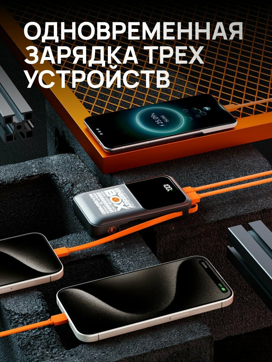 Поддержка слаботочной зарядки: есть Одновременная зарядка нескольких устройств: есть, 3 шт. (USB-C + USB-A + встроенный кабель USB-C) Допуск к провозу на самолете: есть