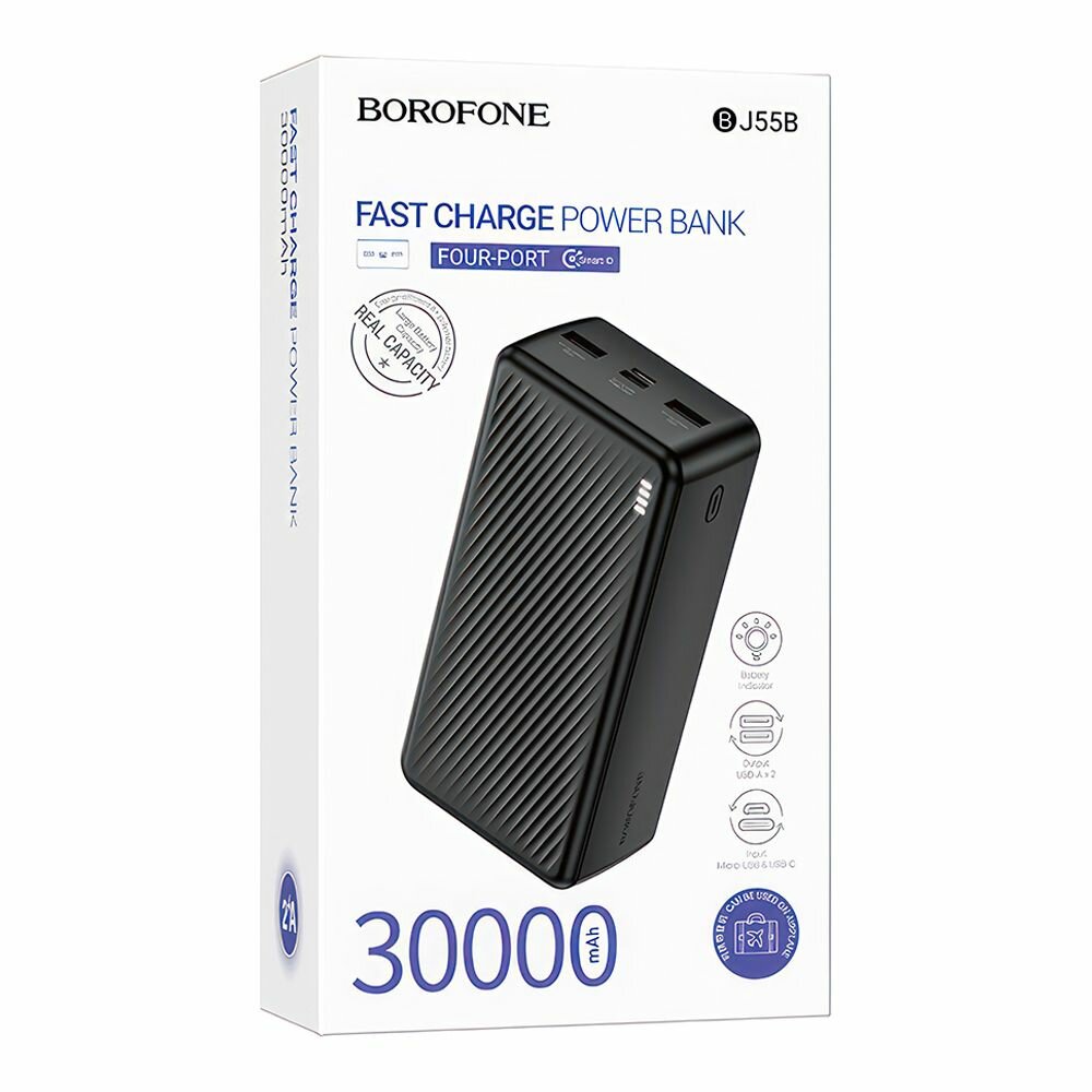 Внешний аккумулятор (Powerbank) Borofone BJ55B Graceful 30000 mAh, 2xUSB, 1xUSB-C, 2А, Li-Pol, черный: сравнение цен, характеристики, фото, актуальное наличие и цены.