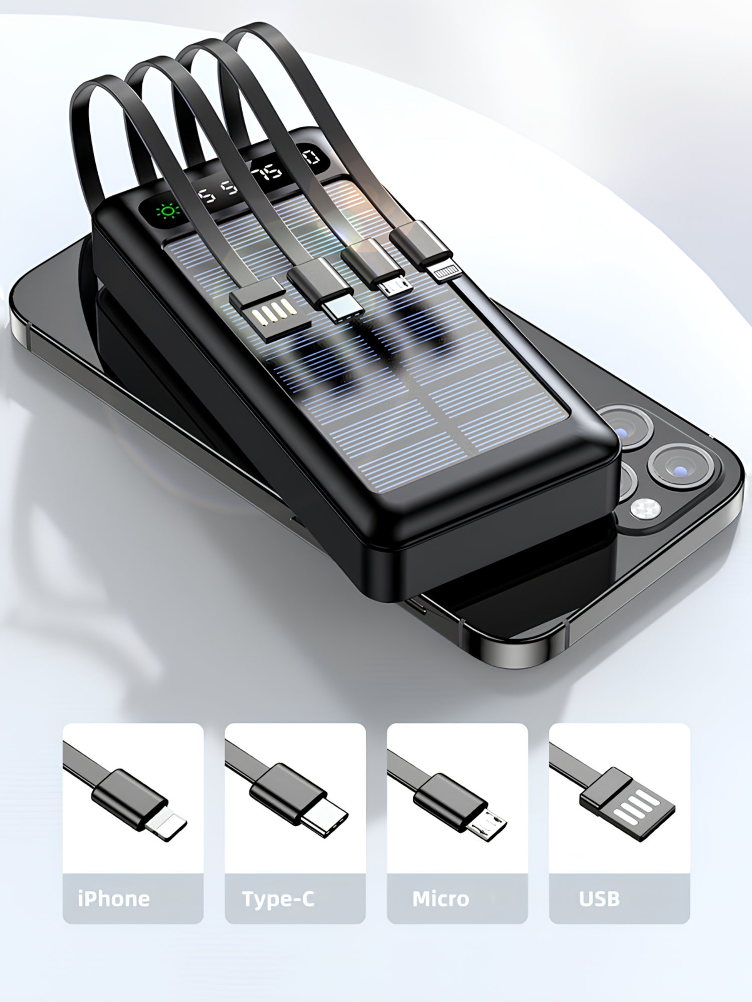 Купить Внешний аккумулятор powerbank для телефона и iPad, 4 провода, солнечная зарядка, фонарик, 50000 mAh, повербанк, черный с доставкой по всей России. Внешний аккумулятор powerbank для телефона и iPad, 4 провода, солнечная зарядка, фонарик, 50000 mAh, повербанк, черный: сравнение цен, характеристики, фото, актуальное наличие и цены.