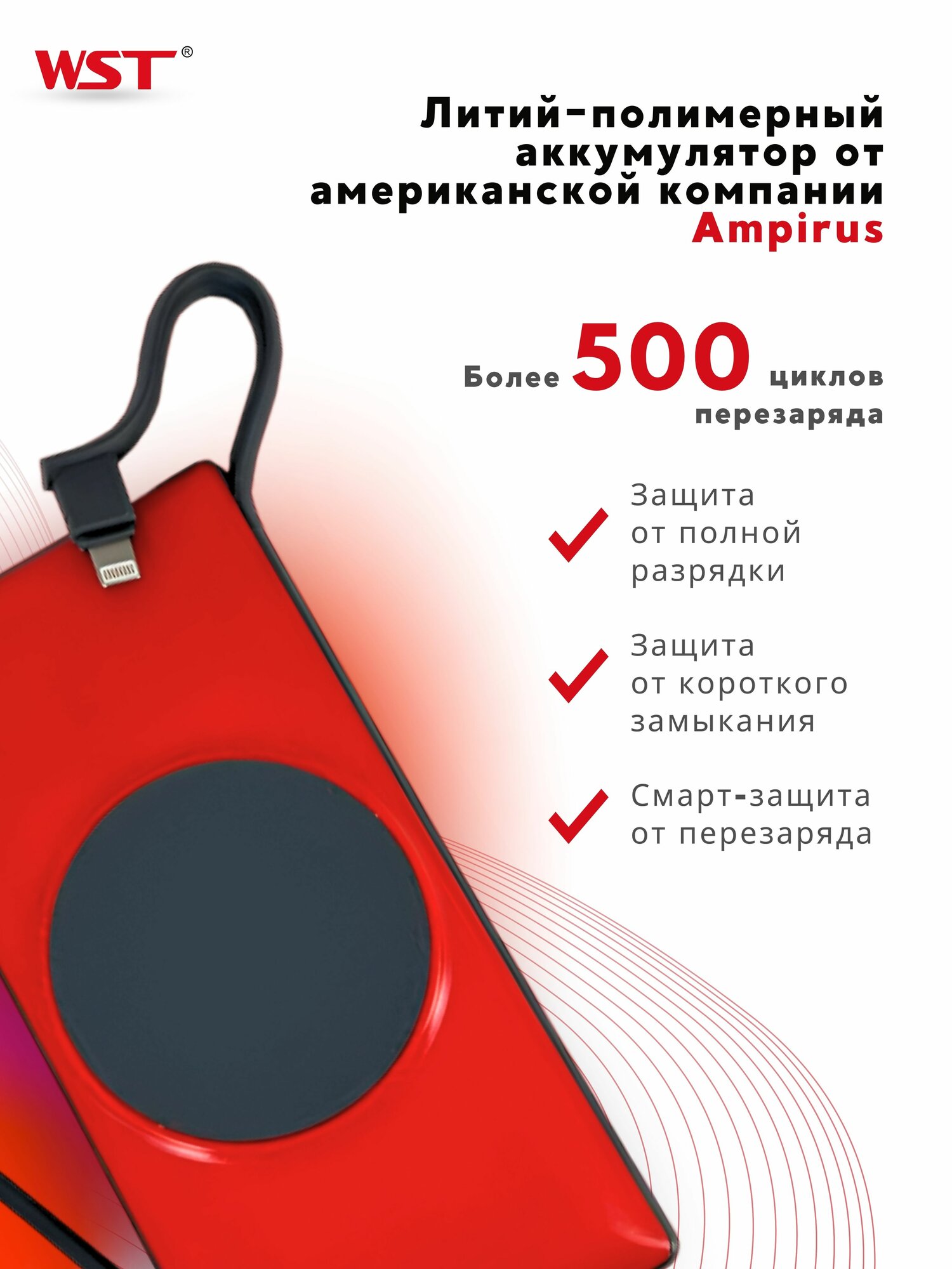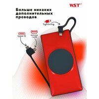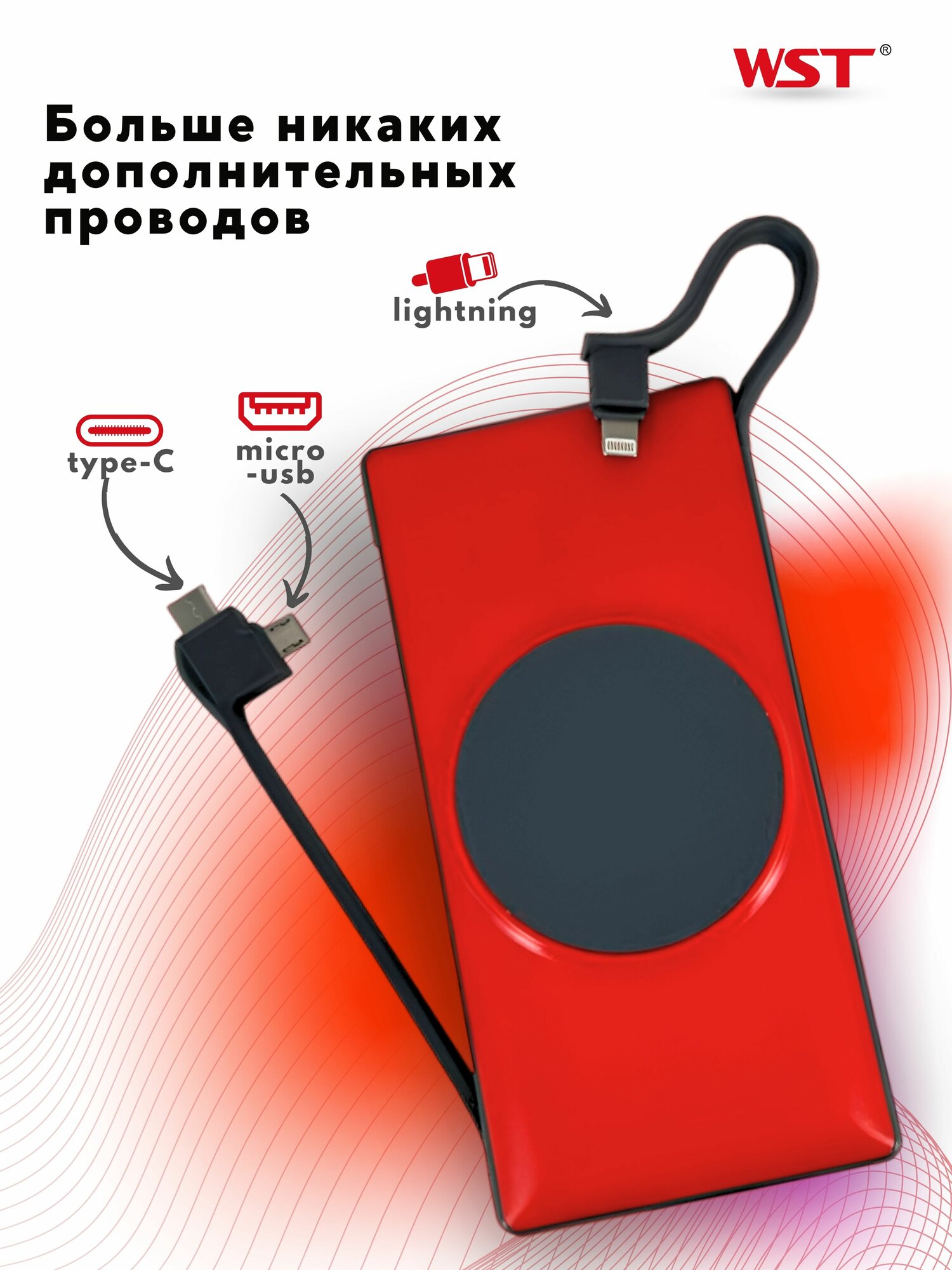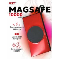 Купить Внешний аккумулятор PowerBank WST Magsafe 922 10000 mAh со встроенными проводами и беспроводной зарядкой с доставкой по всей России.