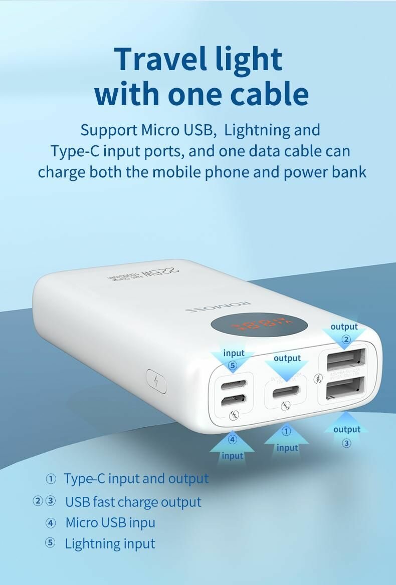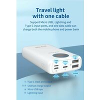 Поддержка быстрой зарядки с мощностью 22.5W Тип аккумулятора Li-Polymer Цвет Белый Гарантия 12 мес. Емкость 10000 mAhВес нетто 290 г Размер товара 119 x 72x 31.6 мм Комплект: powerbank, инструкция, упаковочная коробка, кабель для зарядки powerbank Вход: 5V 2A /9V 2A (Micro USB) 5V 2A /9V 2A (Lightning) 5V 3A/ 9V 2A (Type-C) Выход Type-C Fast Charge: 5V 3A/9V 2.22A/12V 1.67A Выход USB1 Fast Charge: 4.5V 5A/5V 4.5A/9V 2A/12V 1.5A (22.5W MAX) Выход USB2 Fast Charge: 4.5V 5A/5V 4.5A/9V 2A/12V 1.5A (22.5W MAX) USB1+USB2+Type-C=5V 3A Широко совместим с основными протоколами быстрой зарядкитор, инструкция, упаковочная коробка, кабель для зарядки аккумулятора
