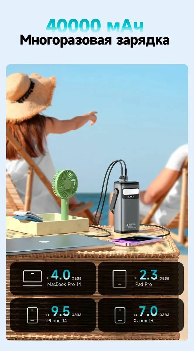 Внешний аккумулятор Romoss, PMT40, 40000 mAh, LiFePo4, быстрая зарядка, темно-серый: сравнение цен, характеристики, фото, актуальное наличие и цены.