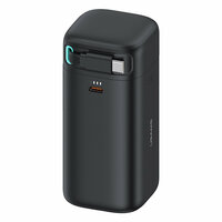 Имеет два разъема USB Type-C, которые позволяют заряжать до 2-х устройств одновременно. Один разъем уже содержит втягиваемый кабель, его максимальная длина - 80 см и благодаря механизму в корпусе провод не будет путаться, занимать лишнее место, а также не потеряется в сумке или где-нибудь еще. Аккумулятор поддерживает протоколы быстрой зарядки, а понятная led индикация уровня заряда на передней панели подскажет когда необходимо "покормить" аккумулятор.