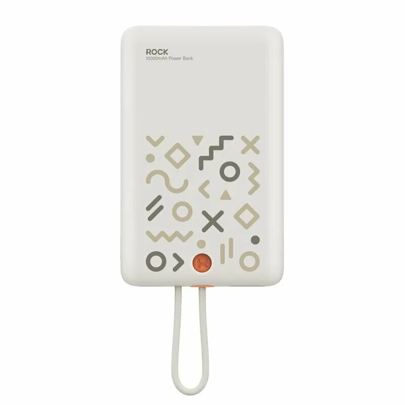 Внешний аккумулятор с принтом ROCK P28 Magnetic PD Fast Charging Power Bank with Cable 10000mAh Бежевый
