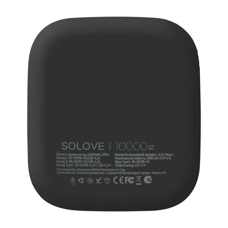 Купить Внешний аккумулятор SOLOVE «Mi», черный, W5 Updated, 10000 мАч, 22,5 Вт (W5 Black Updated RUS) с доставкой по всей России.