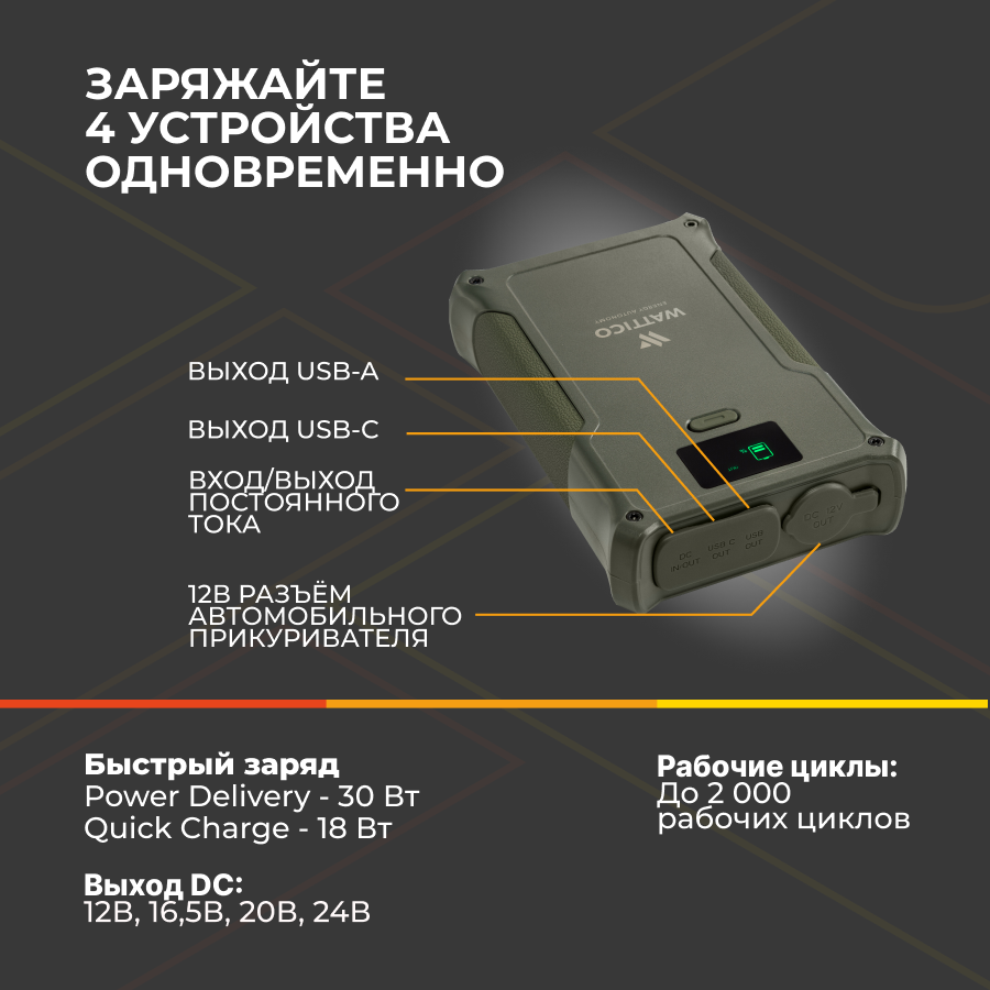 Купить Внешний аккумулятор ударопрочный походный powerbank Wattico WARRIOR с автомобильной розеткой и быстрой зарядкой портативная мини электростанция для туризма с доставкой по всей России.