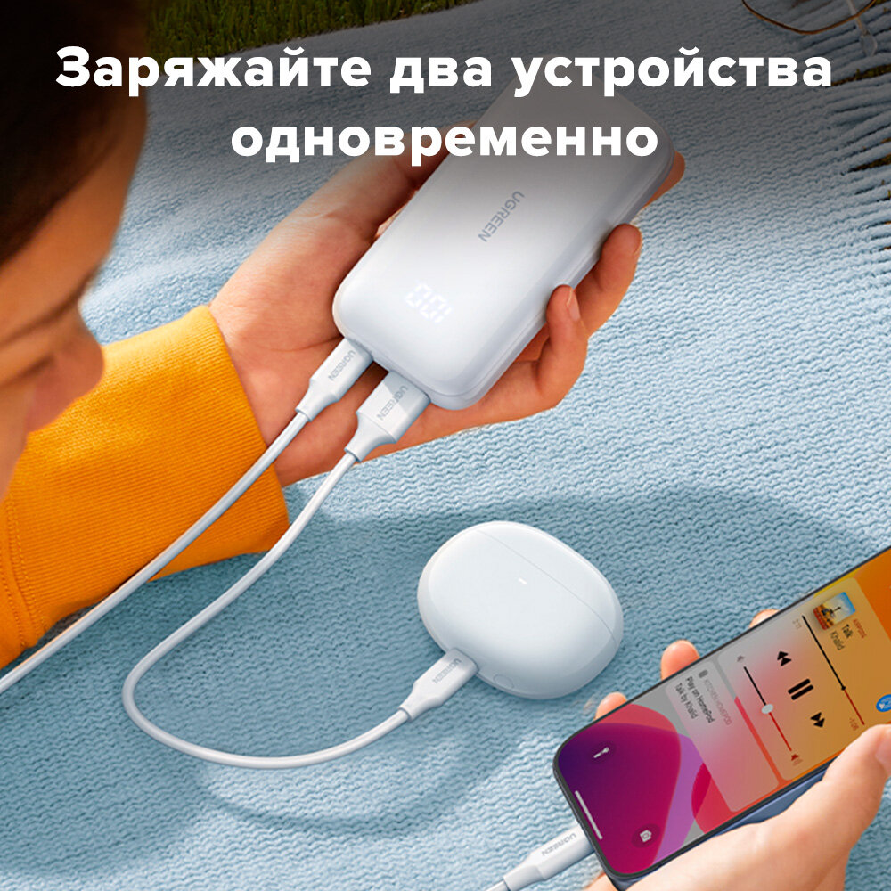 | Комплектация | Внешний аккумулятор UGREEN PB501 (25189) 10000mAh Mini Quick Charging 30W с цифр экраном белый |