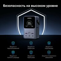 Внешний аккумулятор Ugreen PB770 48000mAh 310W (25286-1) серый оснащен 5 разъемами 3хType-C +2хUSB-A , что позволяет подключить к нему одновременно несколько устройств и не беспокоиться об их безопасности. Встроенная защита эффективно предотвращает их повреждение. Интеллектуальная система определяет тип подключенного устройства и автоматически регулирует силу тока и напряжения. Полная защита как аксессуара, так и заряжаемых устройств от перезарядки, перегрева и коротких замыканий.