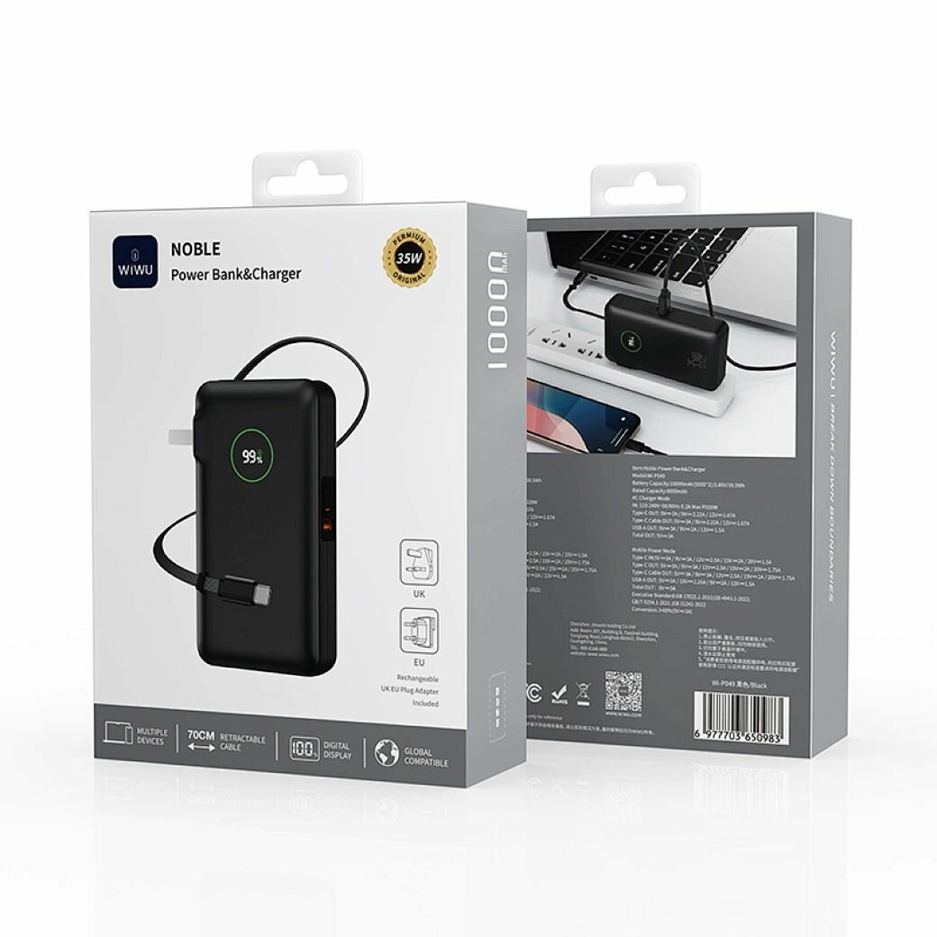 Внешний аккумулятор Wiwu Noble Power Bank + Charger 10000 mAh, 35W, Wi-P049 — белый: сравнение цен, характеристики, фото, актуальное наличие и цены.
