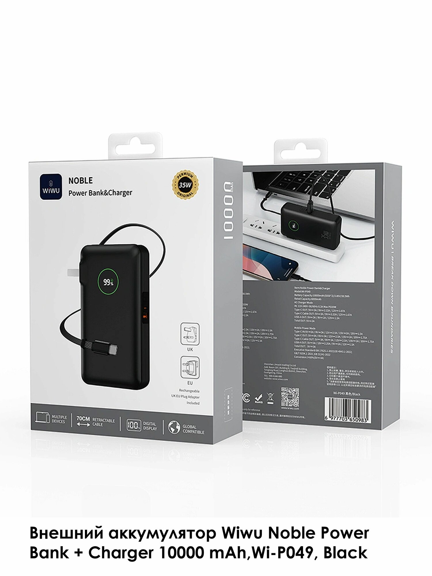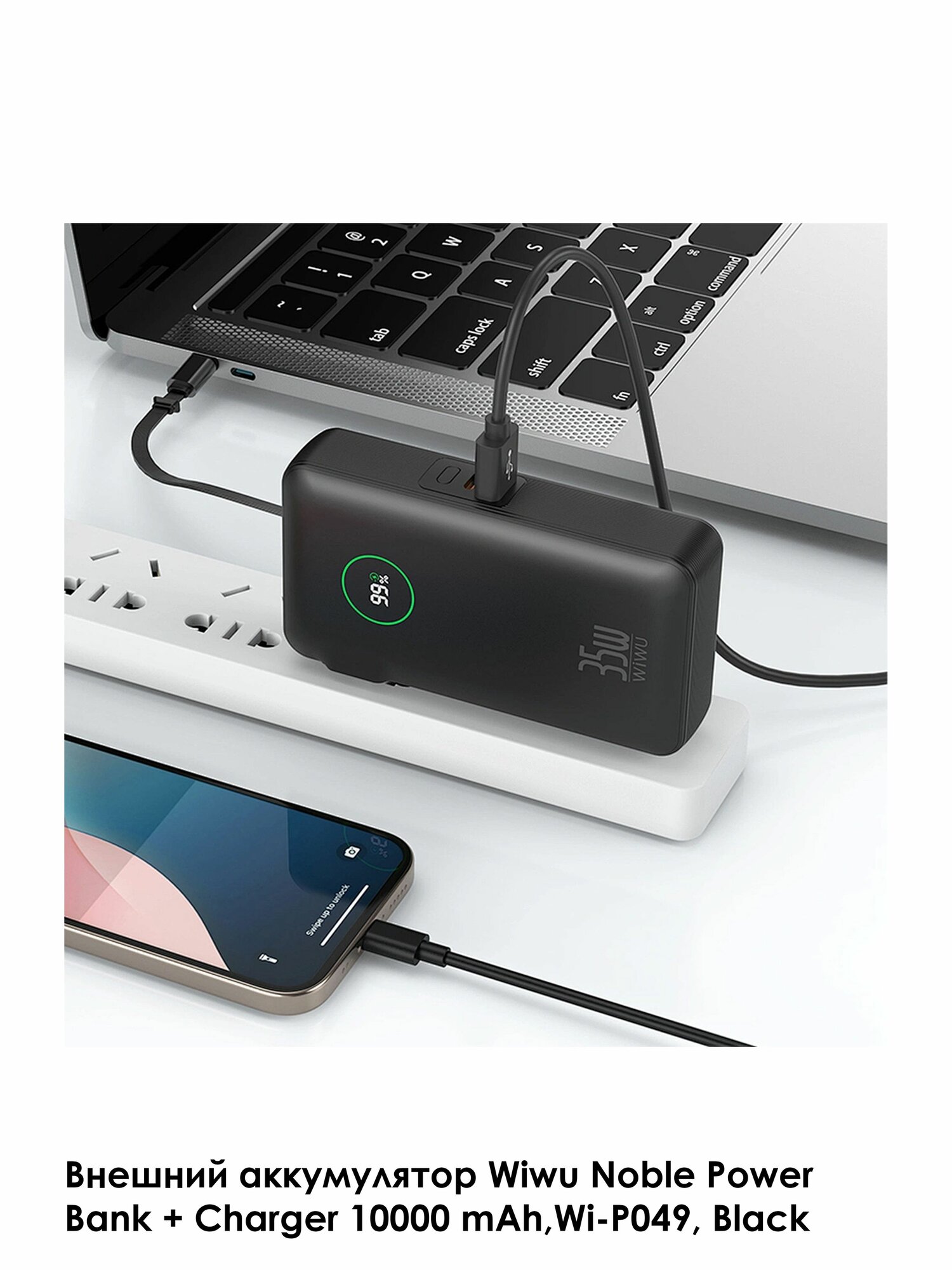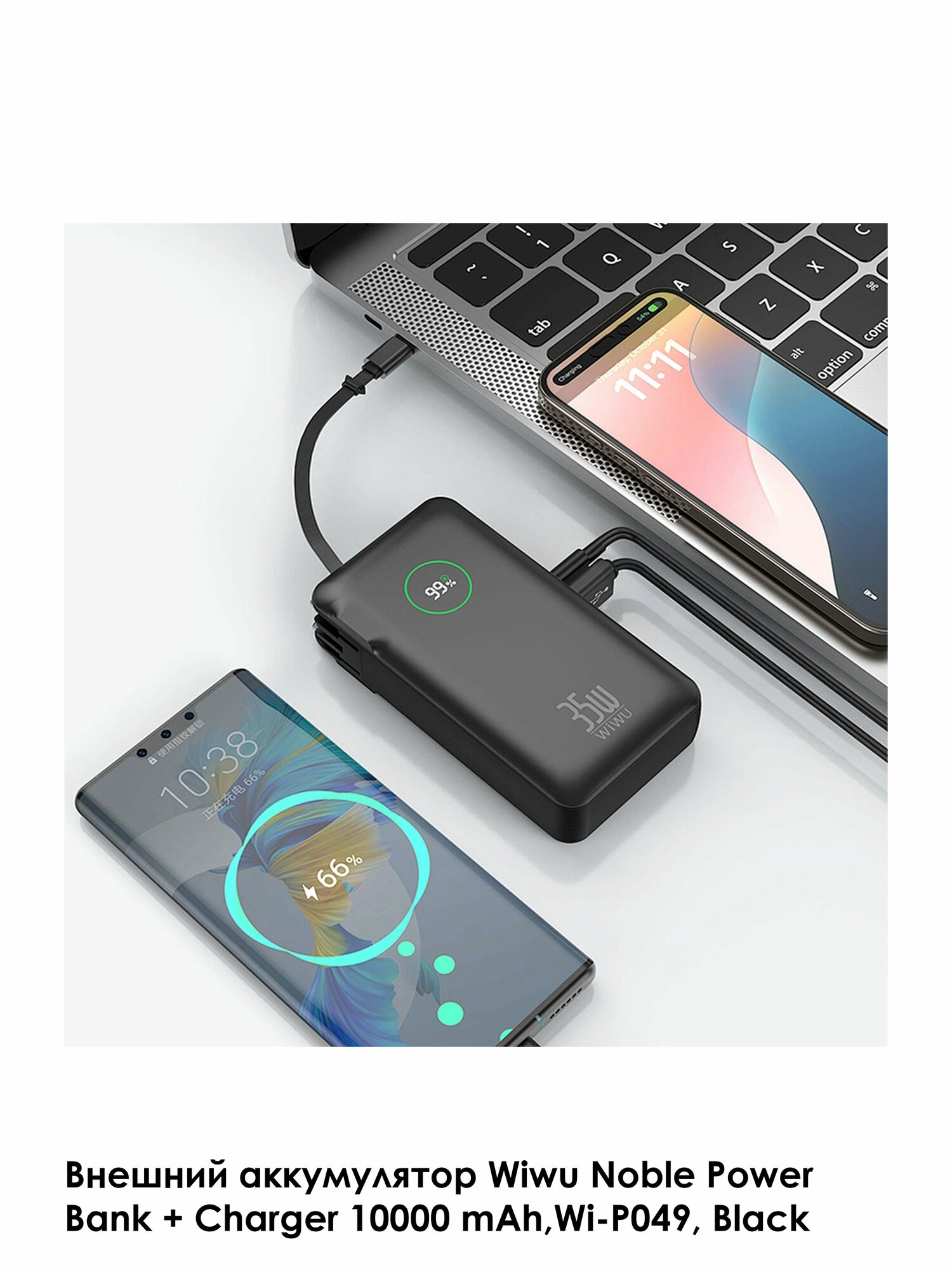 Внешний аккумулятор Wiwu Noble Power Bank + Charger 10000 mAh, 35W, Wi-P049 — черный: сравнение цен, характеристики, фото, актуальное наличие и цены.