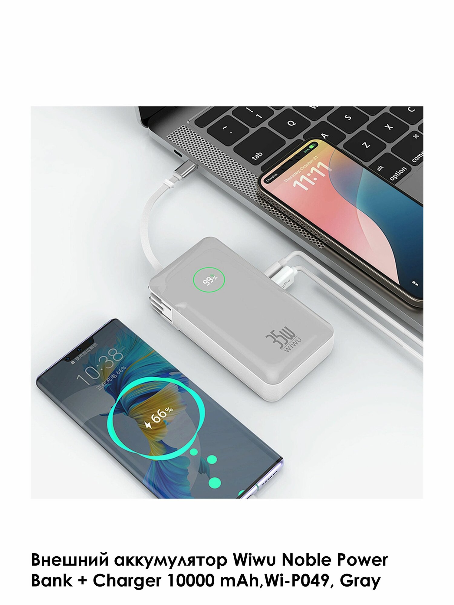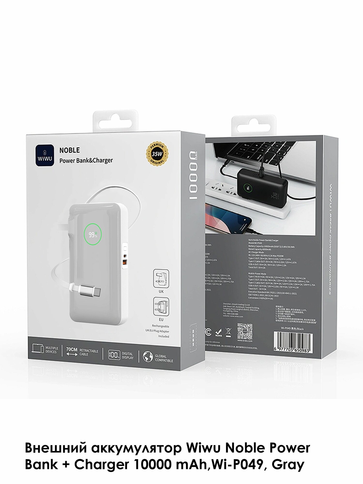 Внешний аккумулятор Wiwu Noble Power Bank + Charger 10000 mAh, 35W, Wi-P049 — серый: сравнение цен, характеристики, фото, актуальное наличие и цены.