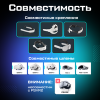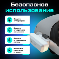 Внешний аккумулятор ZYBER – это самое компактное решение на рынке для дополнительного питания VR-шлемов. Он добавляет 2-3 часа игрового времени, позволяя наслаждаться виртуальным миром без перерывов на зарядку. Внимание: не совместим с PSVR2 Преимущества: Дополнительная емкость: Аккумулятор оснащен емкостью 5000mAh, что позволяет продлить время игры в беспроводном режиме на 2-3 часа, обеспечивая длительные игровые сессии без необходимости подзарядки. Совместимость с другими VR-гарнитурами: Аккумулятор подходит для Oculus Quest 2, Oculus Quest 3, Oculus Quest 3S, Pico 4, Pico 4 Ultra, Pico 4 Pro, что делает его универсальным решением для различных моделей гарнитур. Совместимость со сторонними креплениями: Аксессуар идеально подходит для тех, кто использует альтернативное крепление на Quest 2, предоставляя дополнительное удобство и гибкость в использовании. Быстрая и безопасная зарядка: Производитель гарантирует защиту от перенапряжения и перегрева, а также сохранность USB-C порта гарнитуры, обеспечивая безопасную и надежную зарядку. Легко собрать: Конструкция аккумулятора позволяет легко крепить его на боковой стороне шлема с помощью клипсы, что делает его установку простой и удобной. Легко менять: При наличии нескольких внешних аккумуляторов ZYBER вы можете легко осуществлять горячую замену, так как повербанк фиксируется на магнитном основании, позволяя продолжать игру без остановок.
