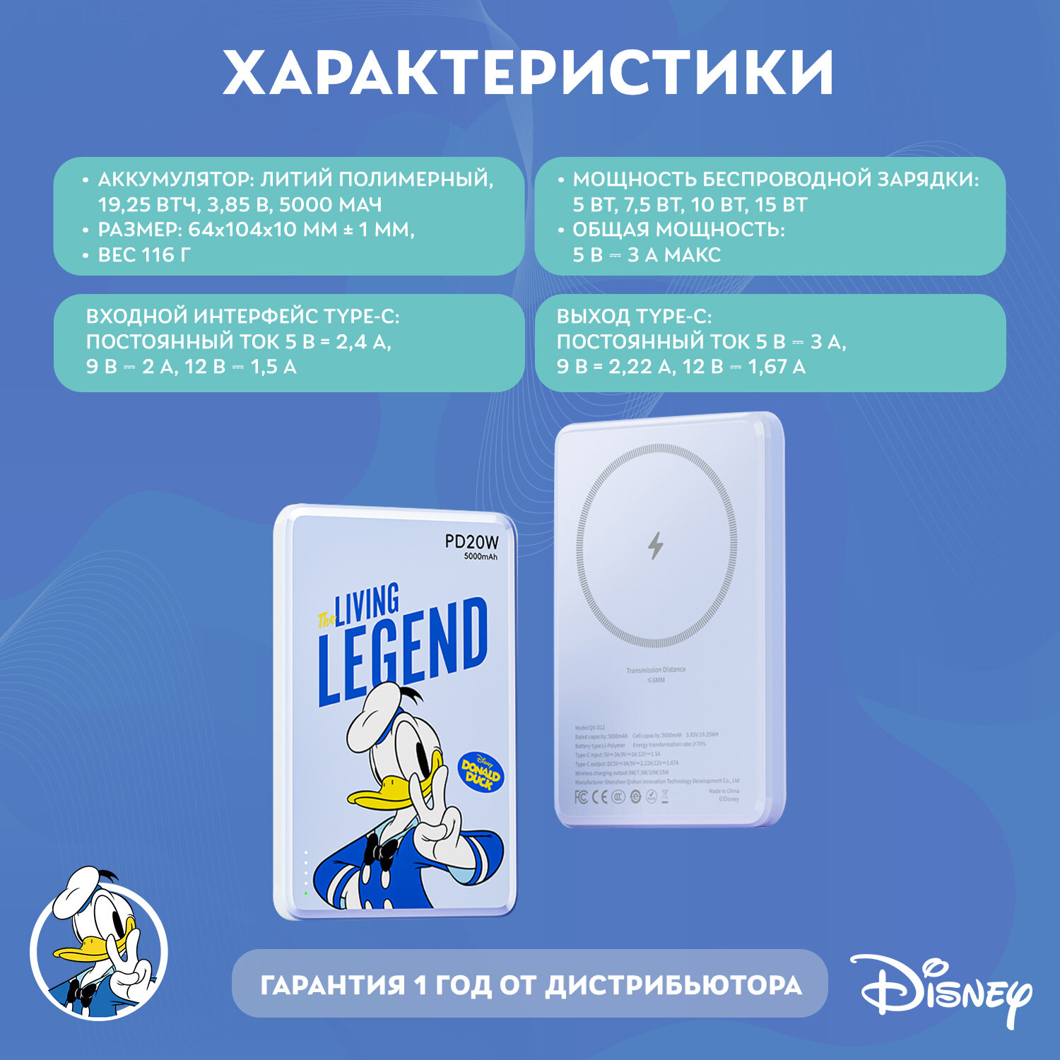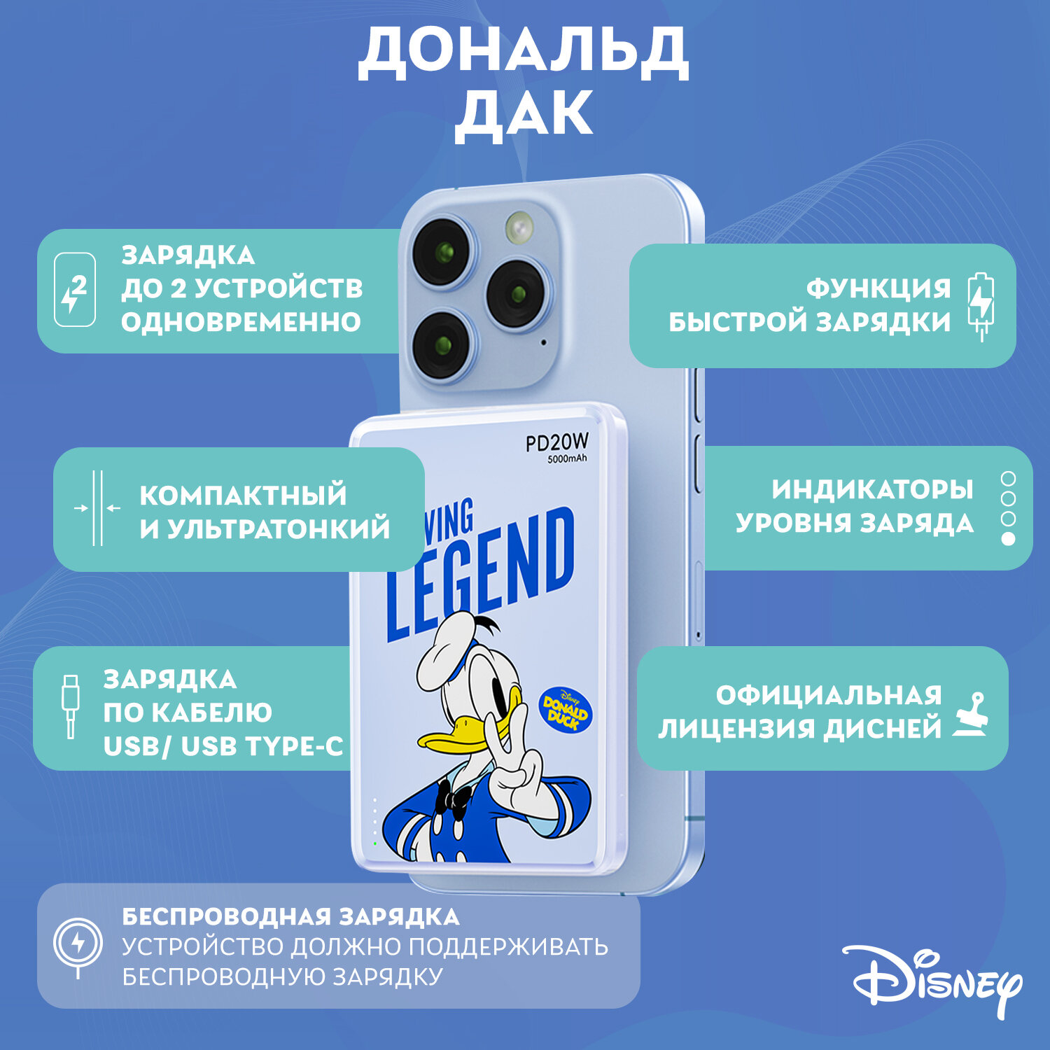 Внешний беспроводной аккумулятор Дисней Дональд Дак, 5000 мАч, с индикатором заряда и магнитной фиксацией: сравнение цен, характеристики, фото, актуальное наличие и цены.