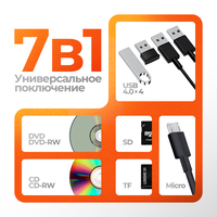 Купить Внешний дисковод для ПК/ноутбука USB 3.0/Type-C, чтение/запись DVD/CD + Micro SD с доставкой по всей России.