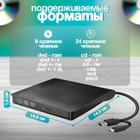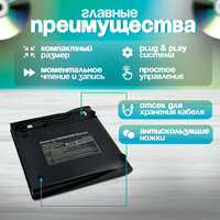 Купить Внешний дисковод для ноутбука (оптический привод) CD / DVD — USB 3.0 , Type-C / для компьютера с доставкой по всей России.