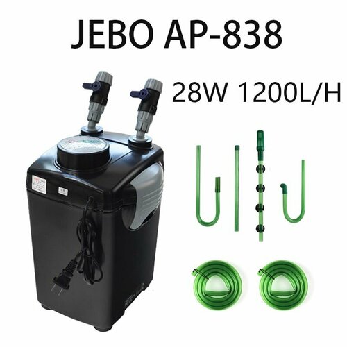 Внешний фильтр-бочка jebo AP-838 silent black мощностью 28 Вт, 1200 л/ч, 4 корзины, полный комплект фитингов, встроенная губка, подходит для аквариума диаметром 80-100 см: сравнение цен, характеристики, фото, актуальное наличие и цены.