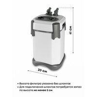 При установке фильтра обратите внимание, что уровень воды в аквариуме должен быть выше минимальной отметки. Сам фильтр необходимо размещать вне аквариума на ровной поверхности на расстоянии 35-110 см ниже уровня воды.