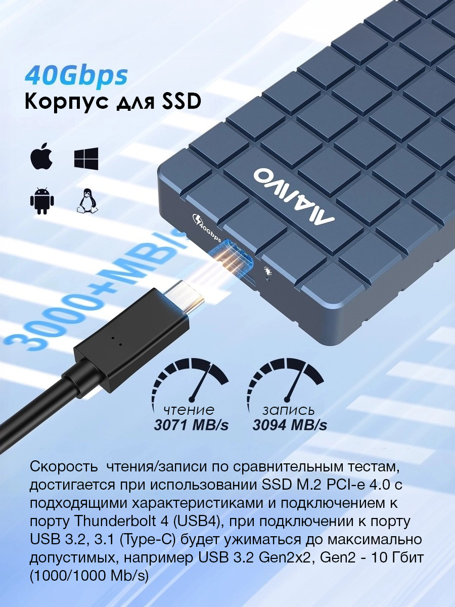 Внешний корпус (переходник) M.2 NVMe PCI-E — USB Type-C 4 (Thunderbolt 3, 4) MAIWO Cold Space Chok Box (40 Gbps): сравнение цен, характеристики, фото, актуальное наличие и цены.