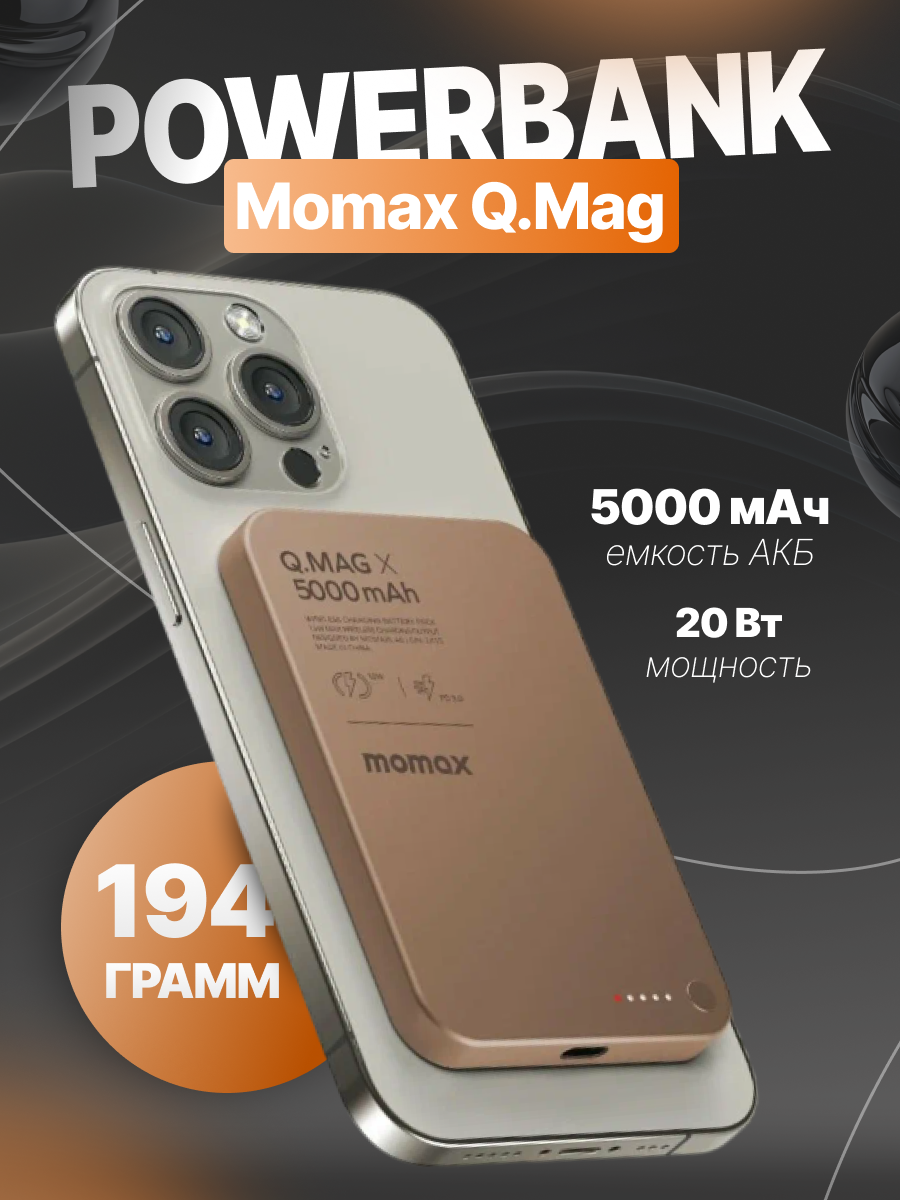 Десерт Титаниум беспроводной Powerbank Momax Q.Mag X5000mAh с зарядкой 20 Вт: сравнение цен, характеристики, фото, актуальное наличие и цены.