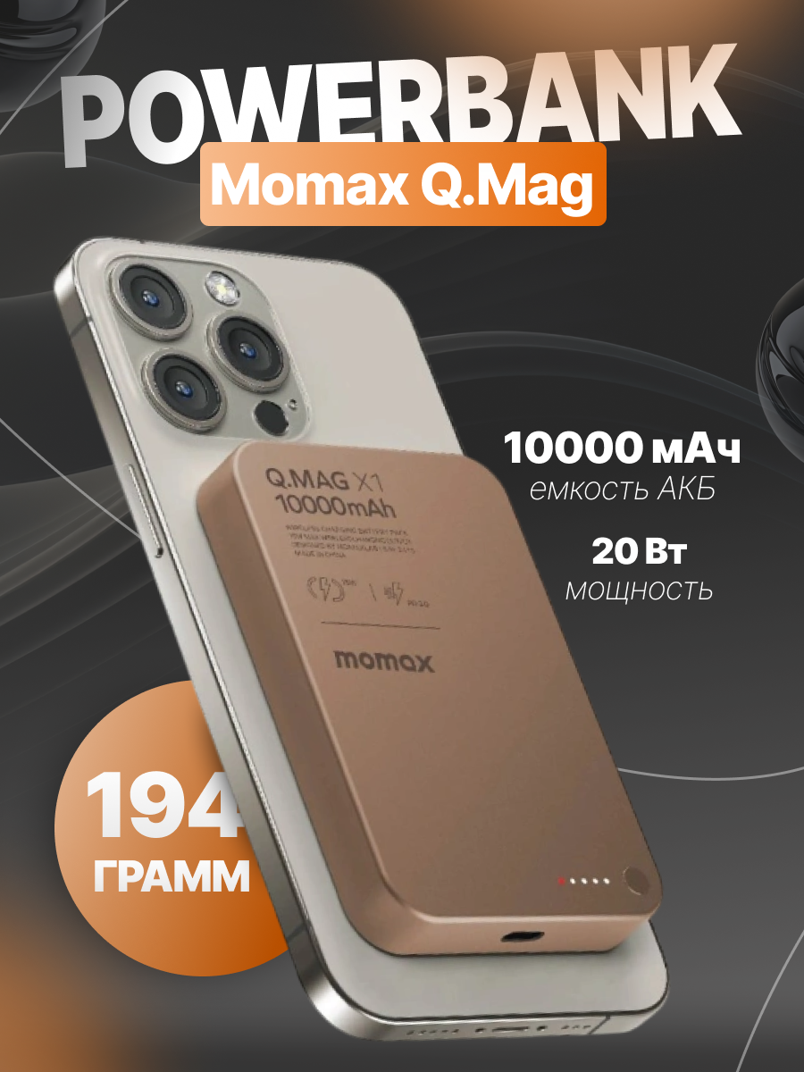 Внешний магнитный аккумулятор с беспроводной зарядкой Momax Q.MAG X, 10000 mAh, 8,3 mm, Qi 15W / PD20W, Desert Titanium: сравнение цен, характеристики, фото, актуальное наличие и цены.