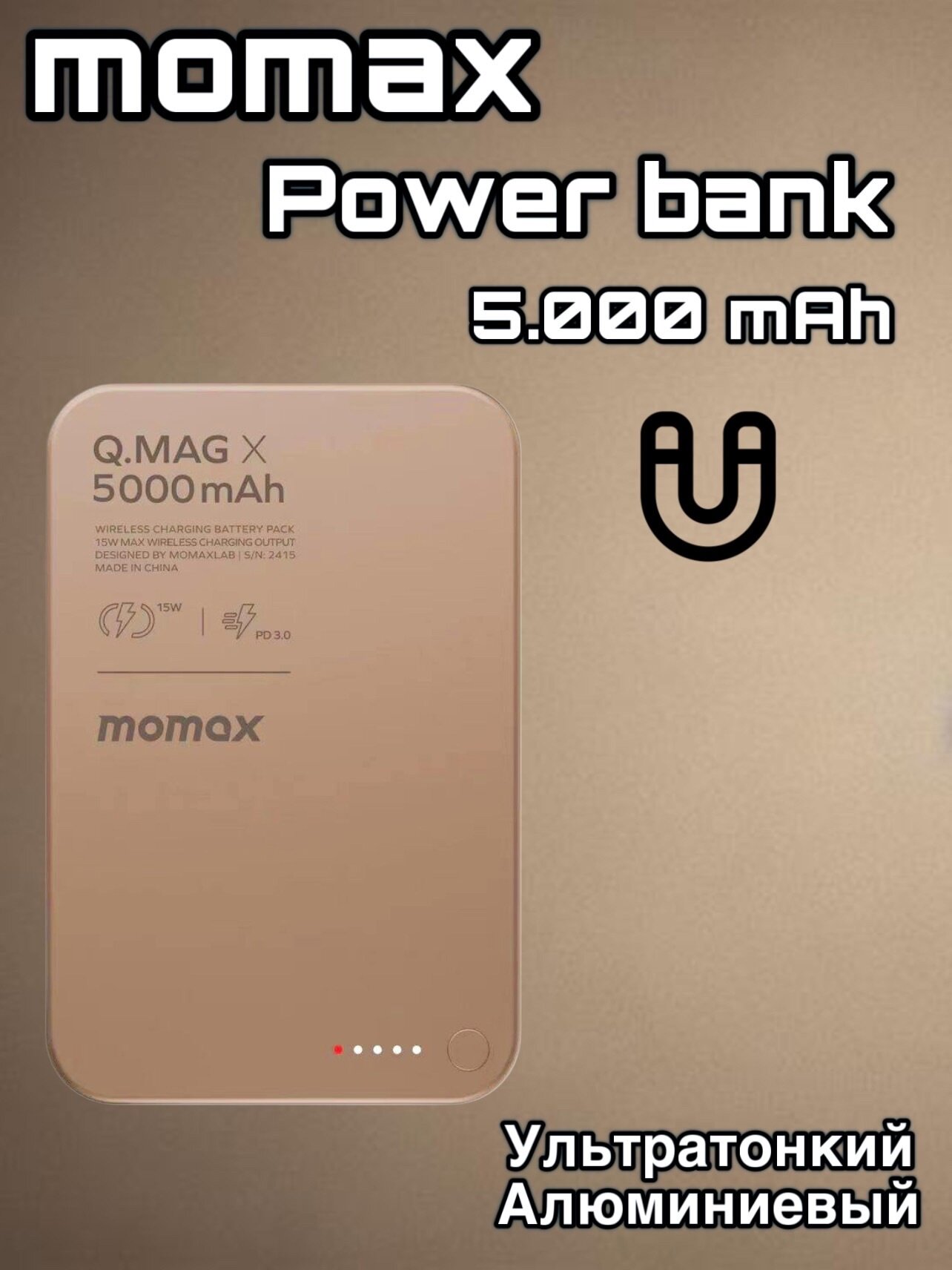 Компактный и портативный: легко удерживать одной рукой. В погоне за окончательным опытом магнитной зарядки Momax неоднократно оптимизировали внутренние компоненты и выбранные литий-полимерные батареи высокой плотности, чтобы переопределить новый магнитный ультратонкий форм-фактор. Стеклянная панель и высококачественный матовый металлический корпус- более жесткая, чем пластиковая оболочка, легко сопротивляться царапинам, ежедневному износу; тонкие округлые изогнутые края, сочленение натуральные и гладкие и более долговечные.