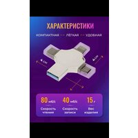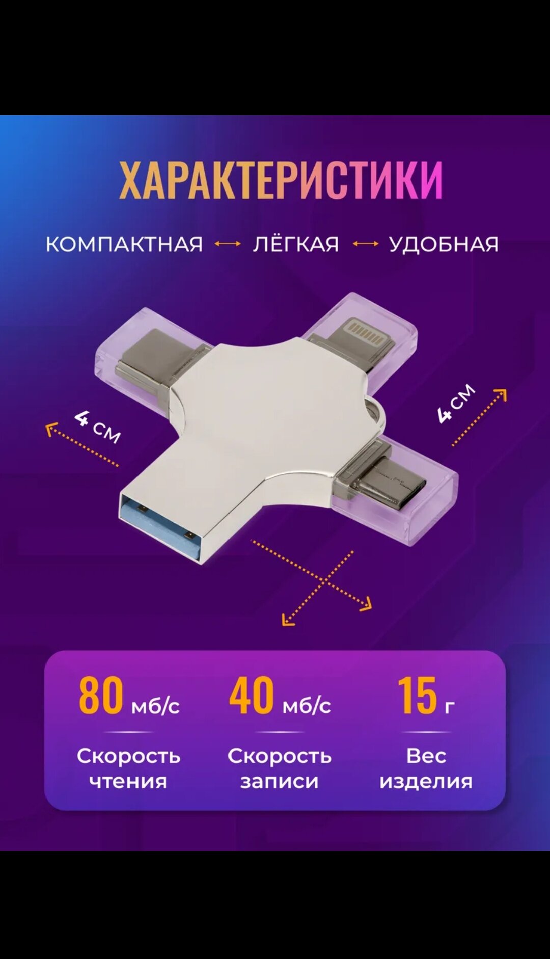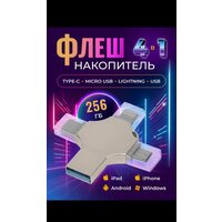 Внешний накопитель 4 в 1 USB флешка Lightning, MicroUSB, Type-C, USB, FLASH накопитель для iOS, Android, Windows, 256gb: сравнение цен, характеристики, фото, актуальное наличие и цены.
