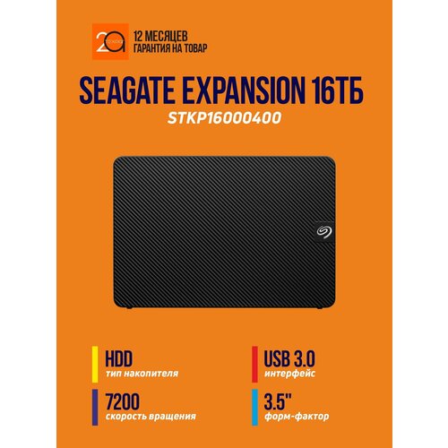 Внешний накопитель HDD Seagate Expansion 3.5" 16 Тб USB 3.0 - это надежное и вместительное решение для хранения и передачи данных.